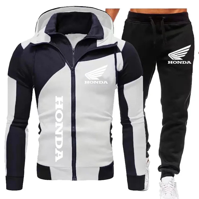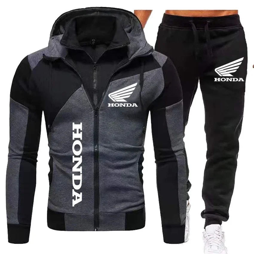 Nouveau ensemble de sport décontracté deux pièces à col montant en pur coton Honda pour hommes avec veste à double fermeture éclair et sweat-shirt à capuche haut ouvert