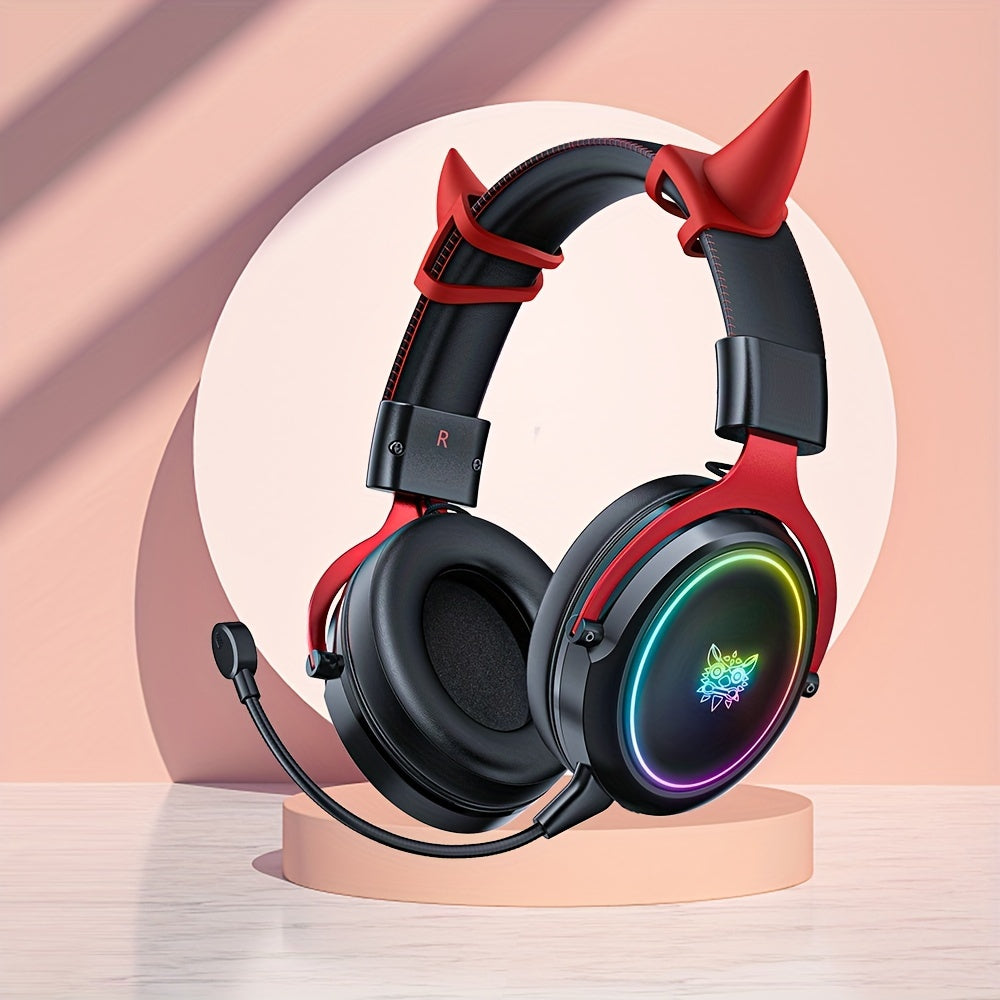 ONIKUMA Gaming Headset with Detachable Little Demon Horns, RGB Lighting, HD Microphone for PC Gaming - Volume Control, 3.5mm Jack
