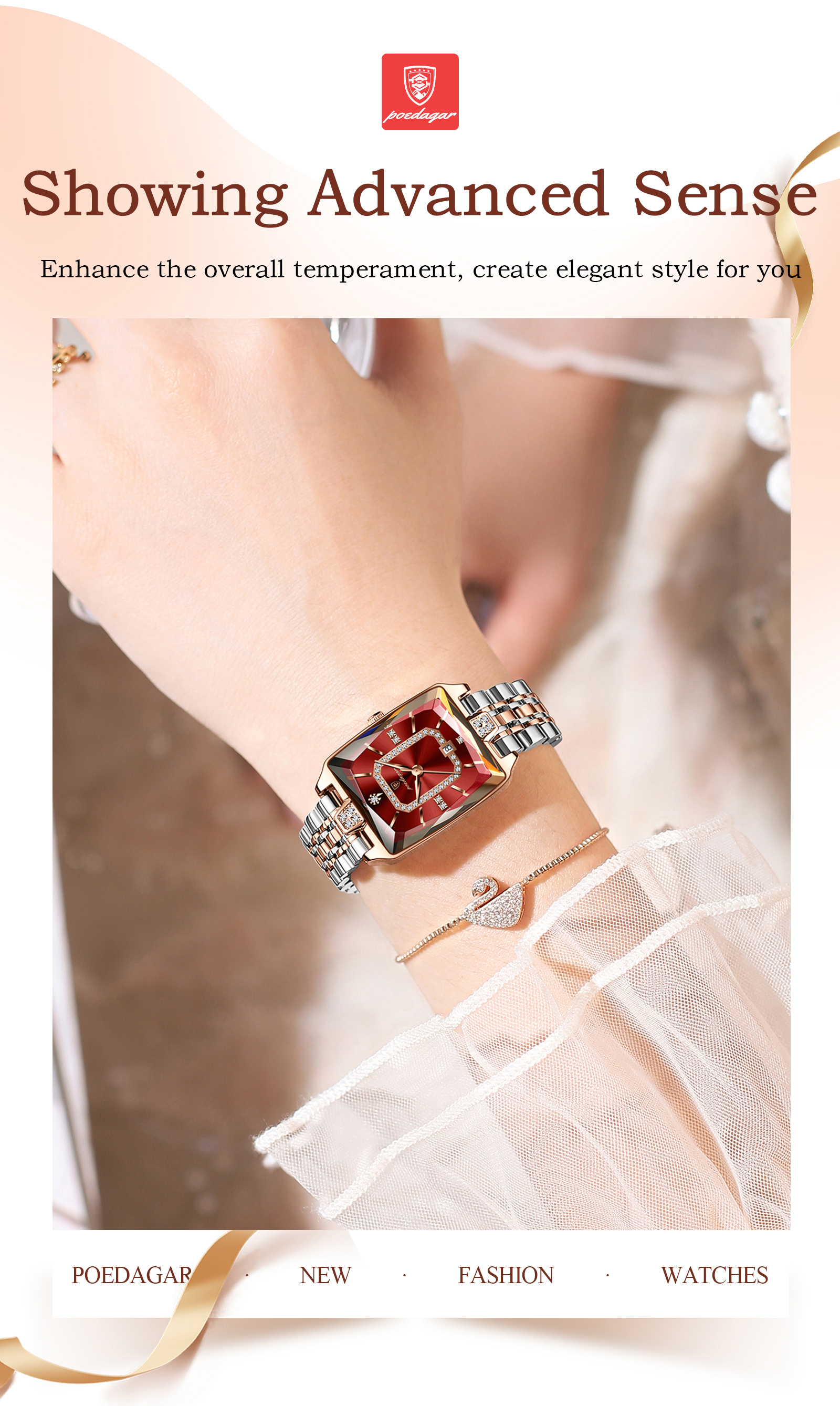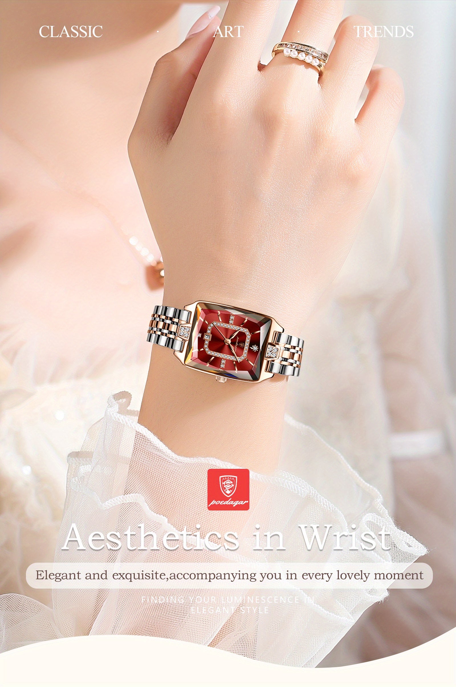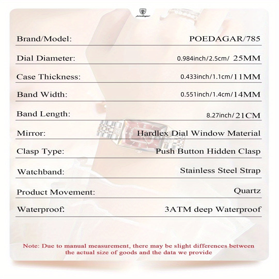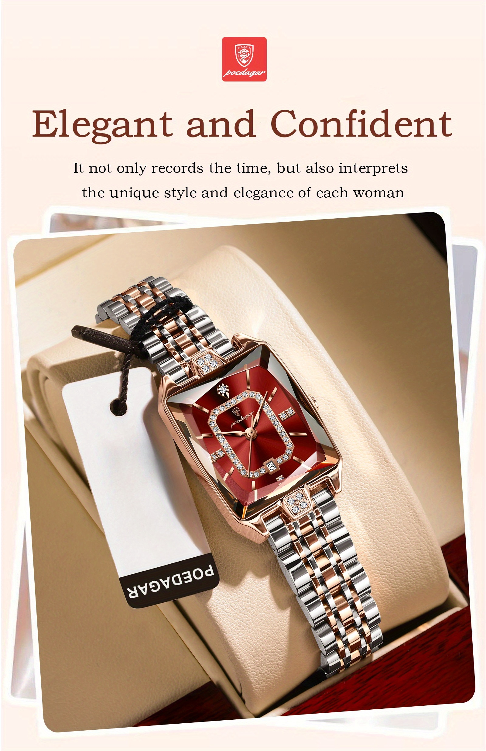 POEDAGAR Minimalist Luxury Women'S Watch - Elegant Stainless Steel Quartz Movement, 30m Waterproof, Date Display, Rectangular Dial for Daily Use & Gift Giving, Casual Chic Style, Quartz Watch, Sophisticated Timepiece