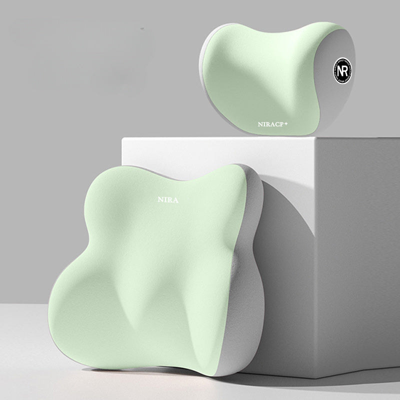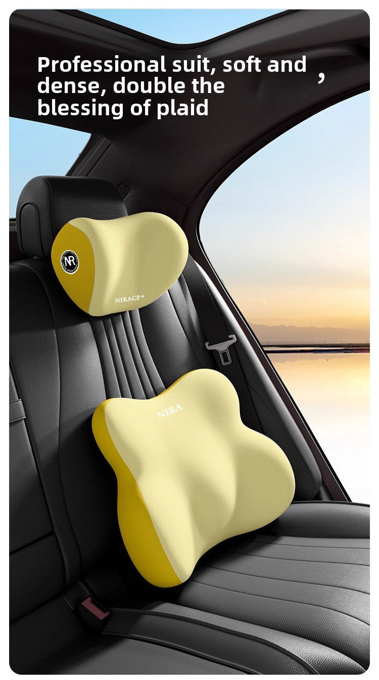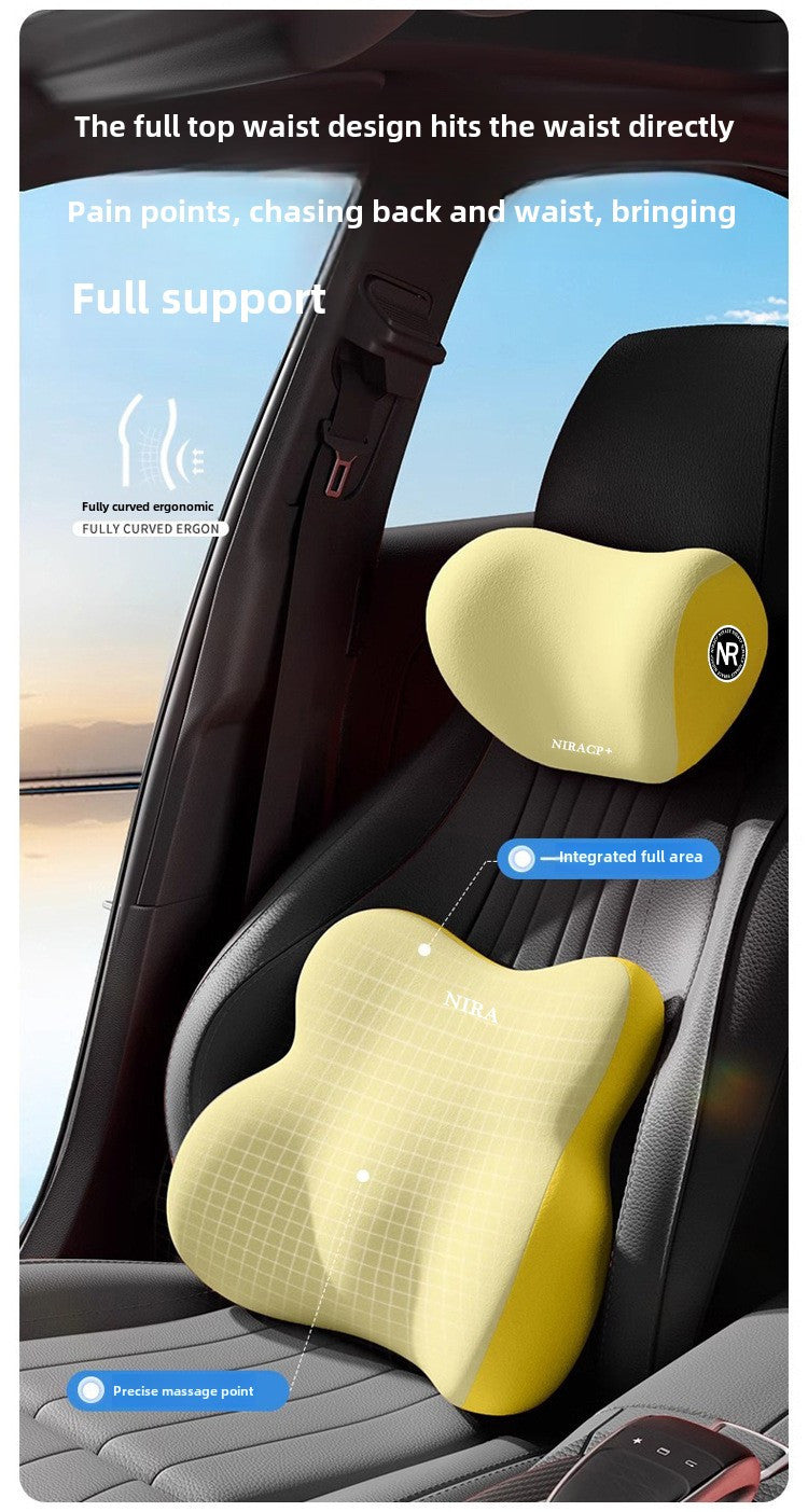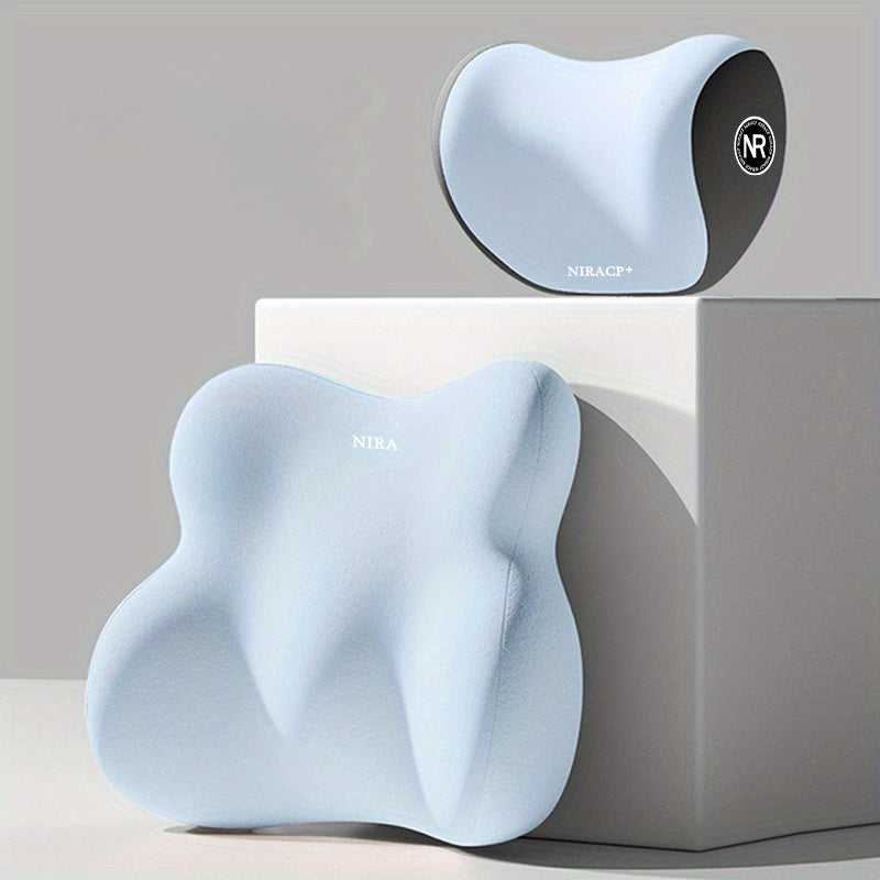 [Premium Car Support] Premium NIRA+ Car Headrest and Lumbar Support Set | Ergonomic Neck and Waist Protector, Synthetic Fiber Memory Foam Cushion Kit for Automobile Seat - Universal Fit