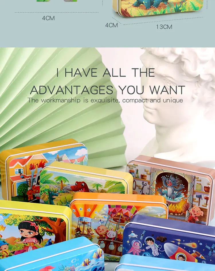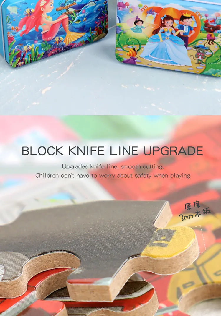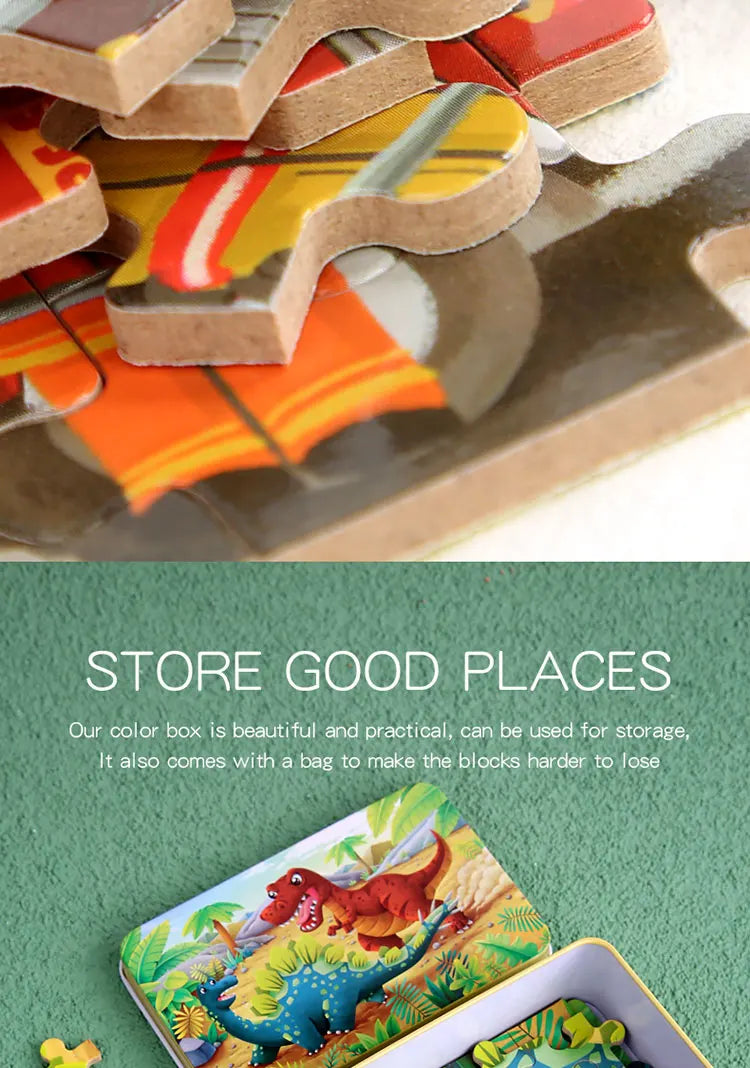 Puzzle de dessin animé 60 pièces avec boîte en métal, Puzzle de véhicule Animal d'éducation précoce pour enfants, jeu d'interaction Parent-enfant
