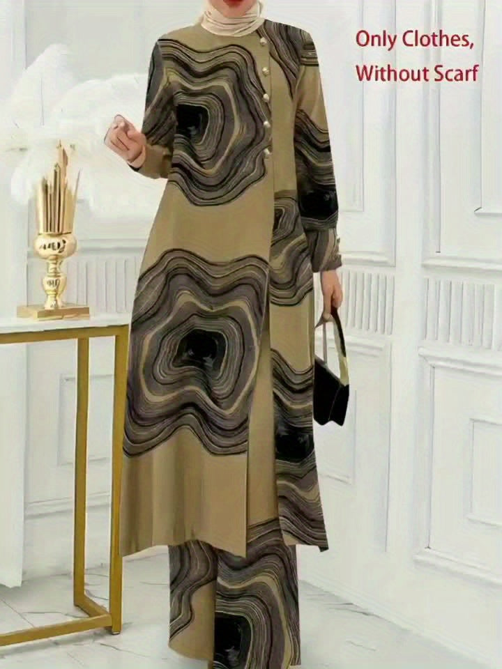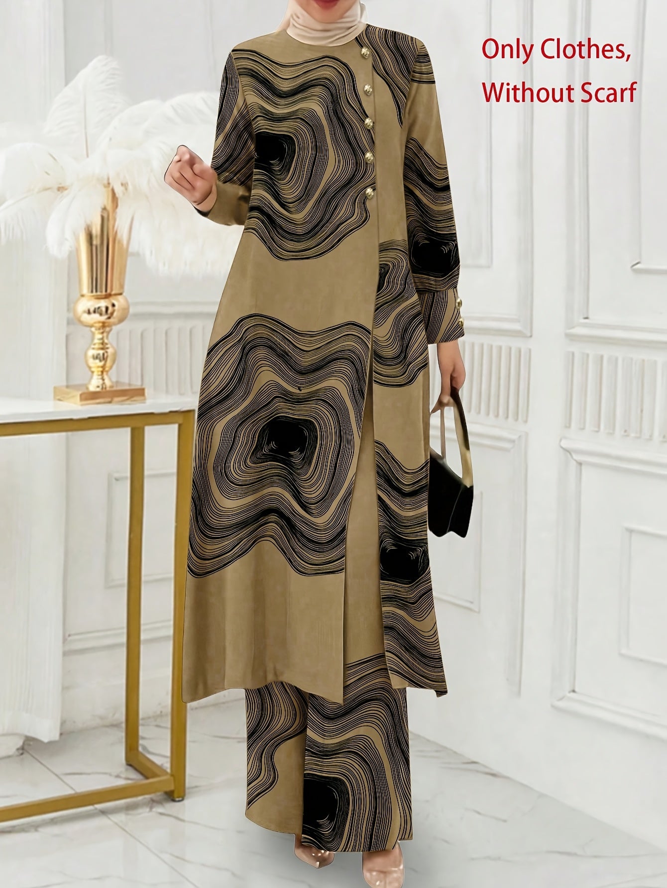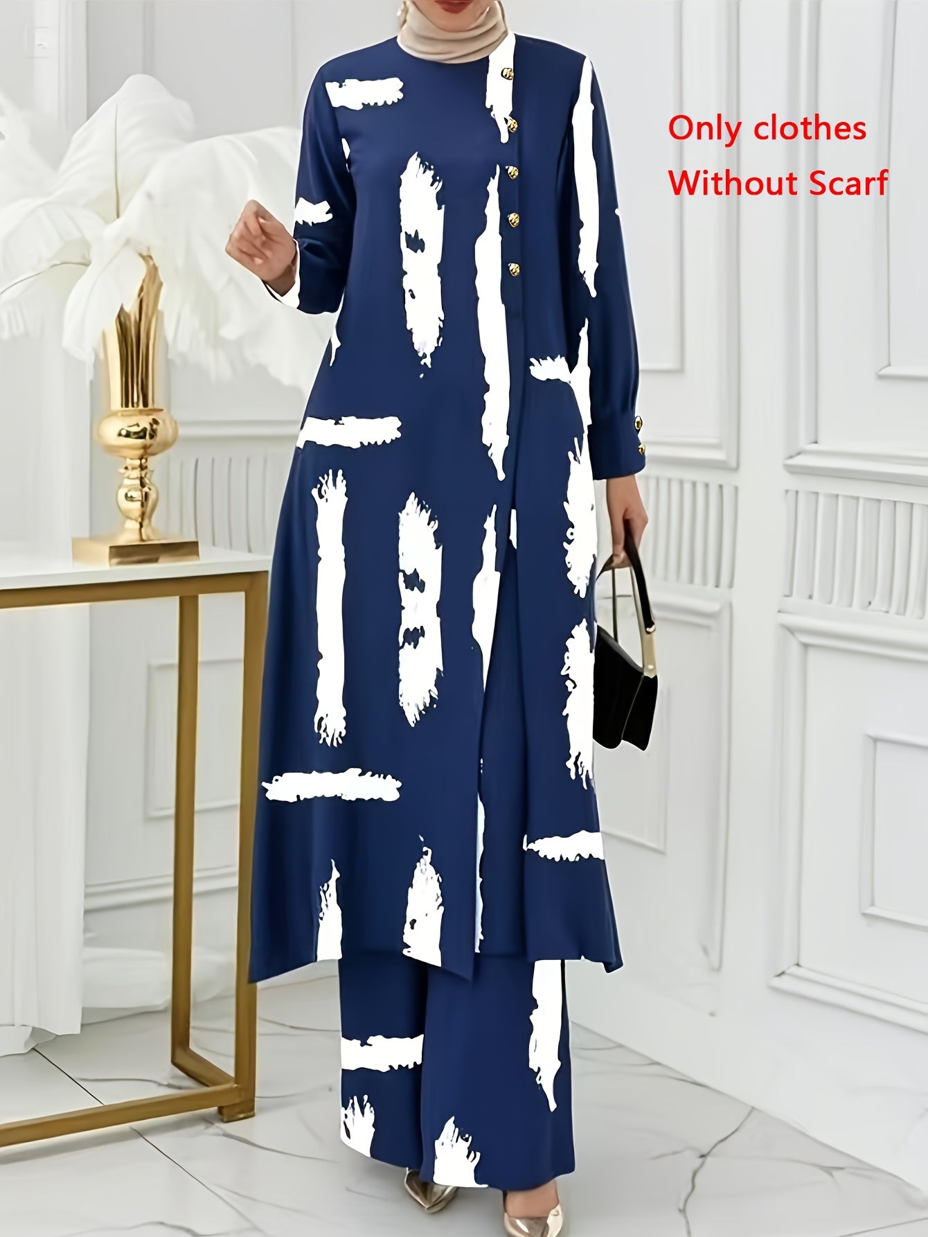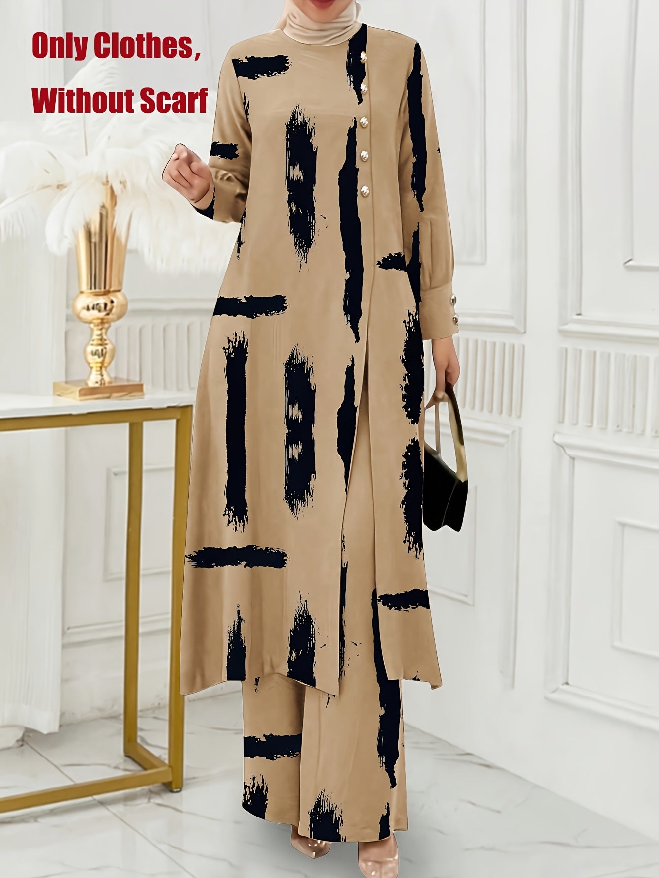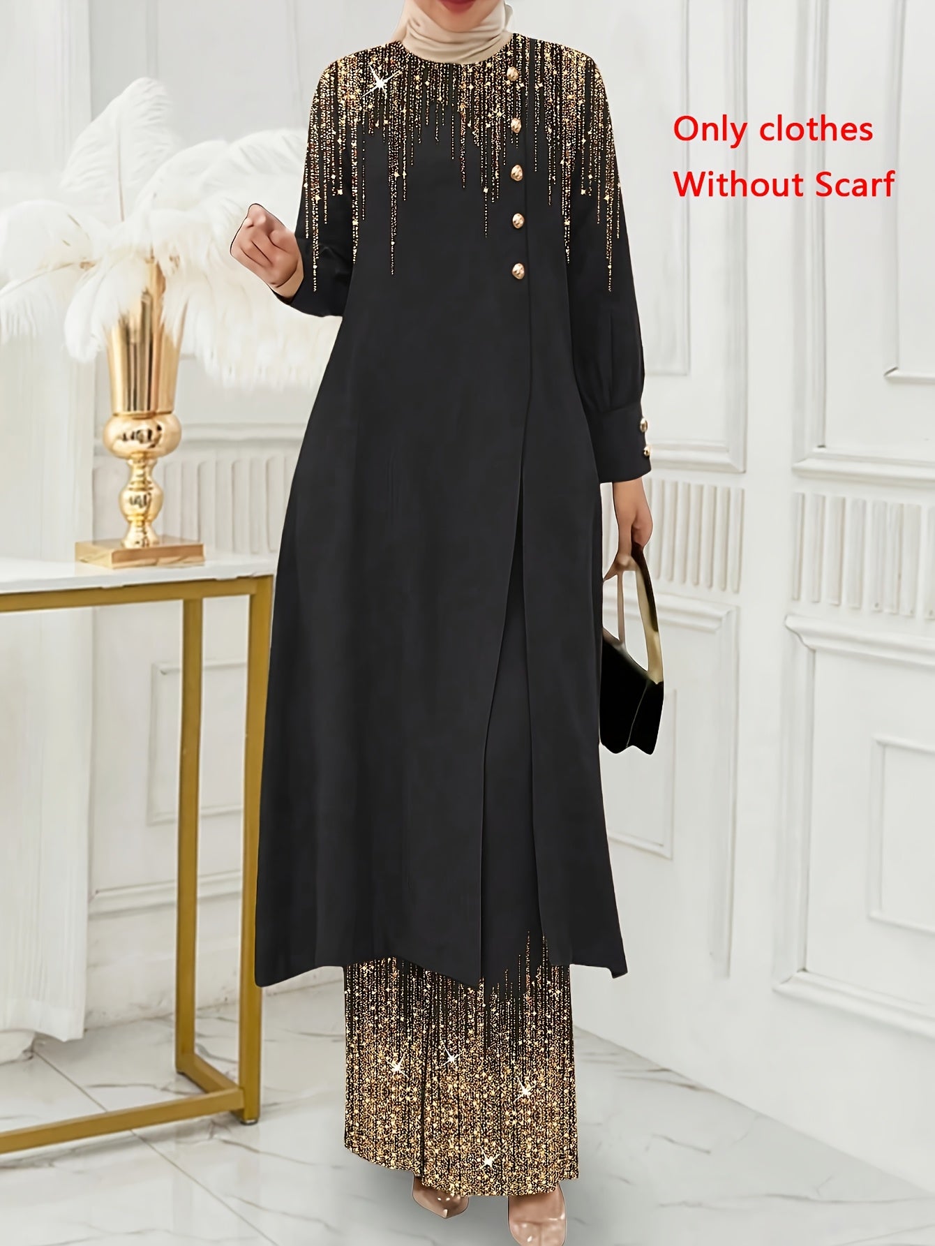 Ramadan, Women Button-Decorated Solid Color Long Sleeve Top & Pants Set, Arabic Style Clothing, Only Clothes, Without Headscarf