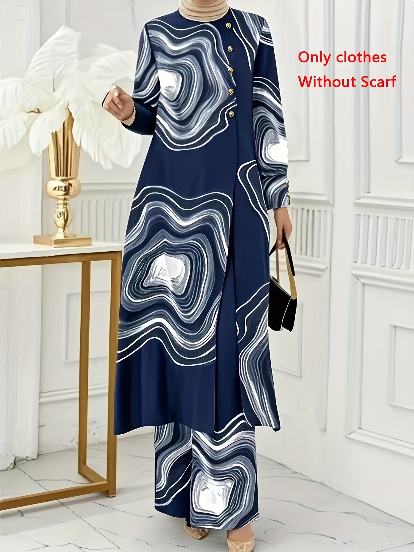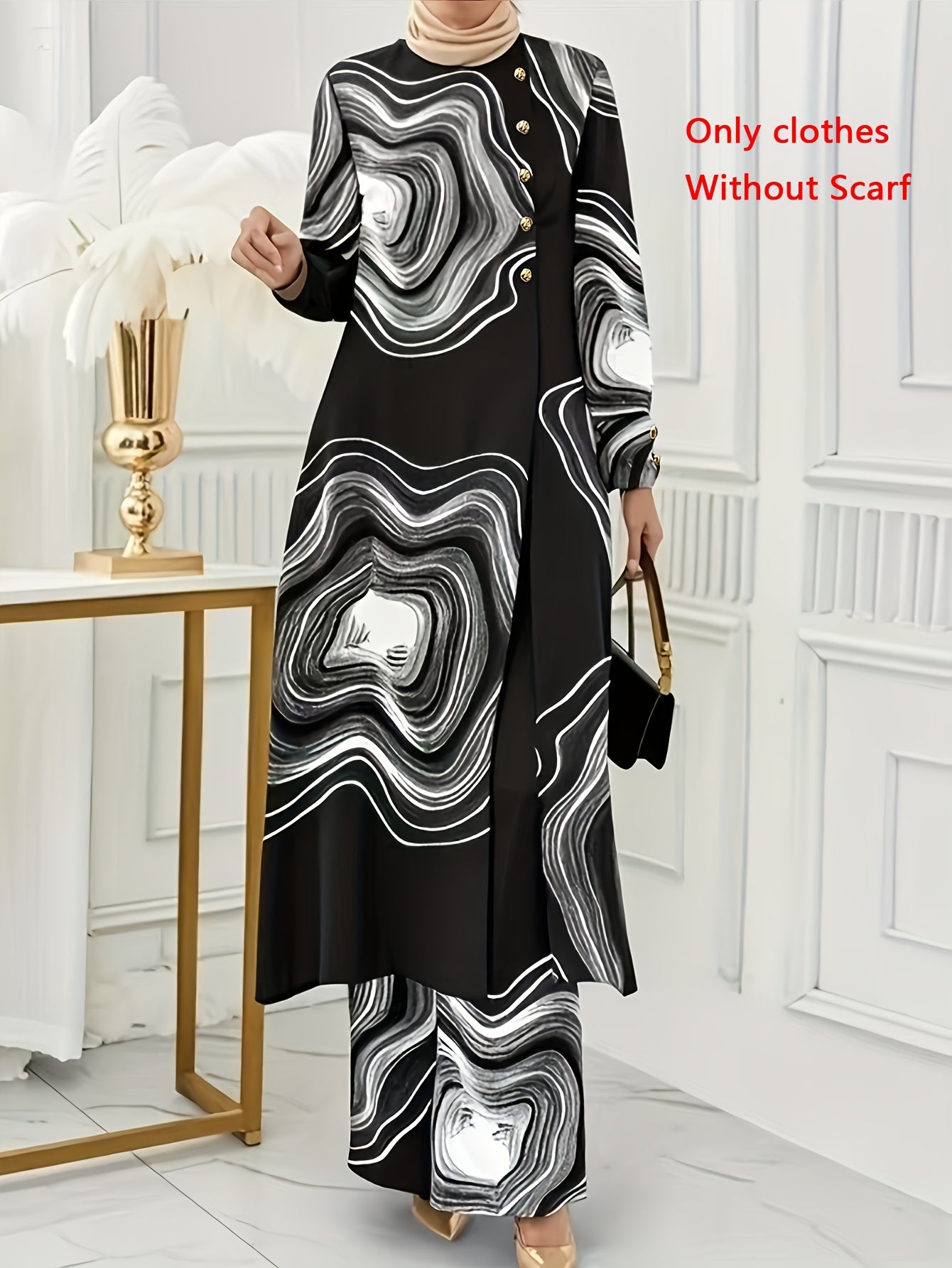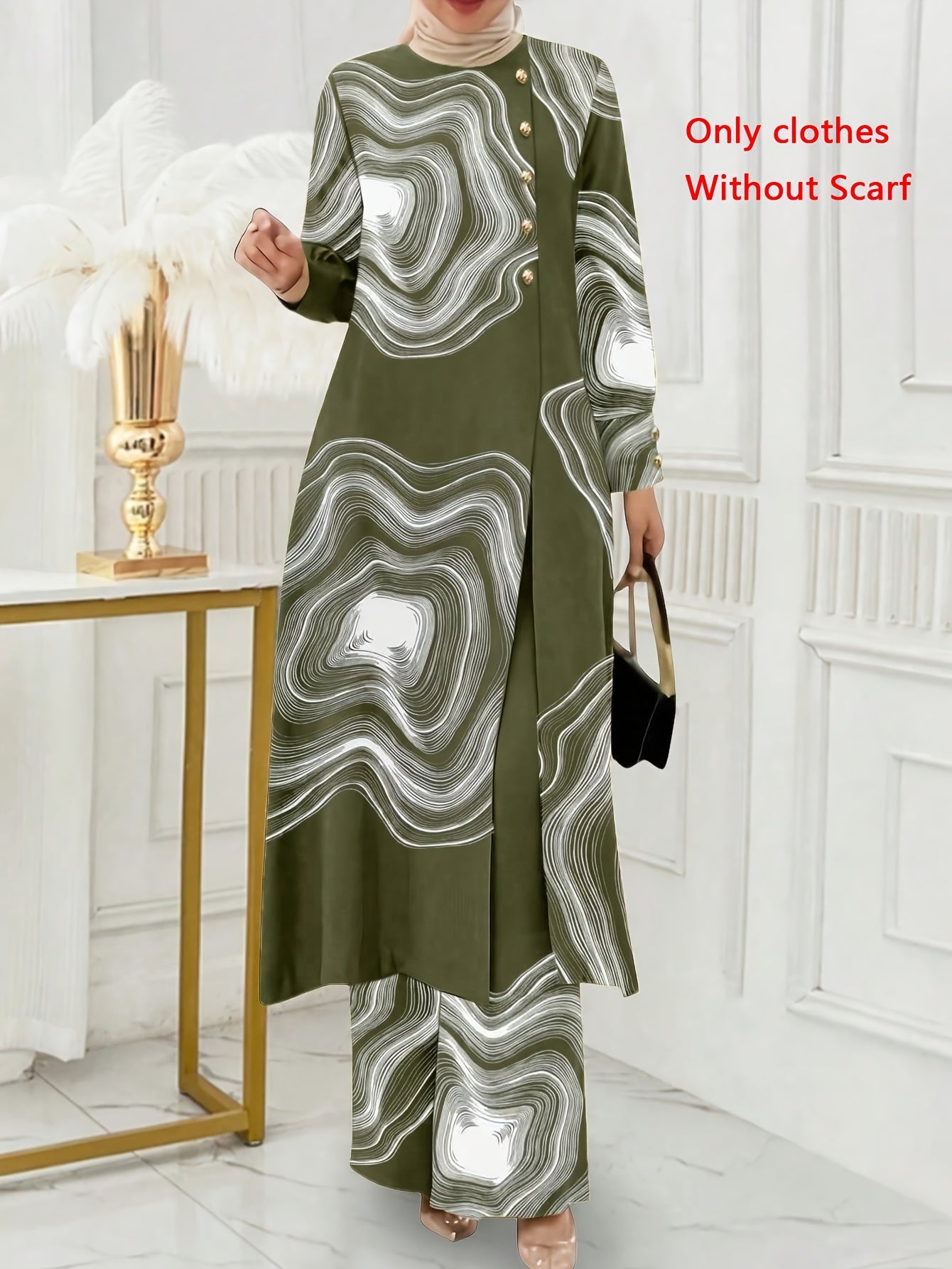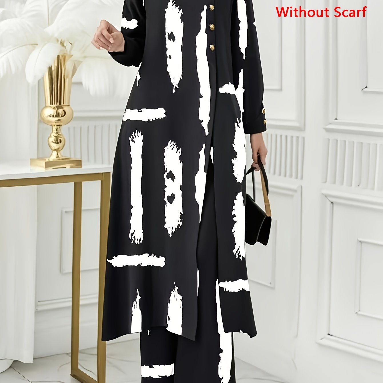 Ramadan, Women Button-Decorated Solid Color Long Sleeve Top & Pants Set, Arabic Style Clothing, Only Clothes, Without Headscarf