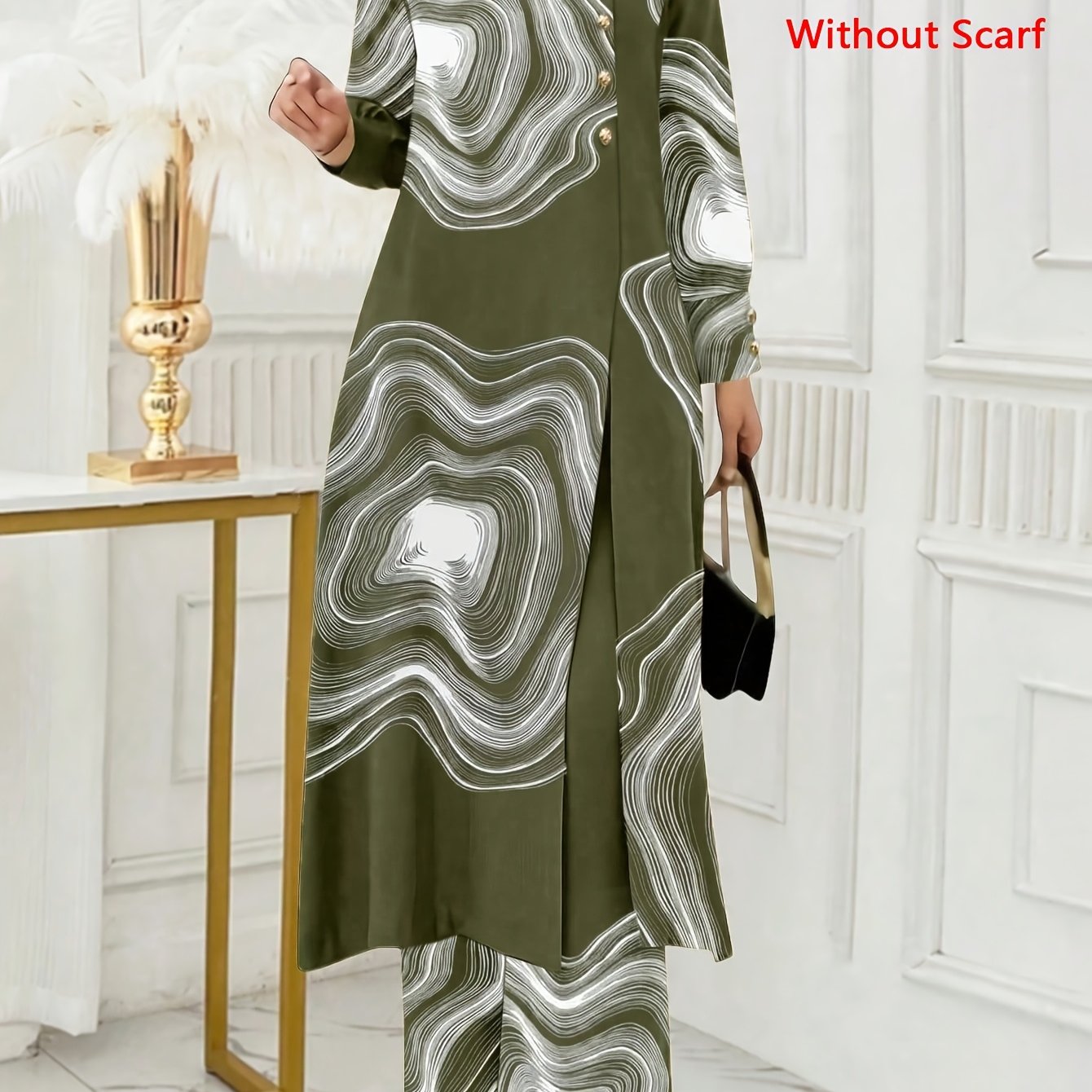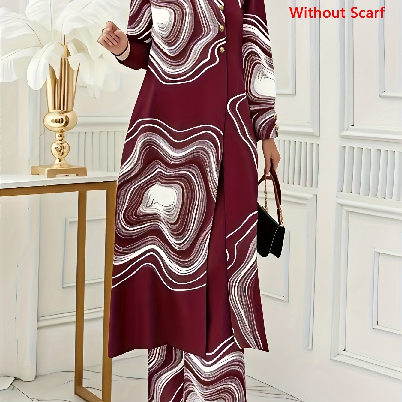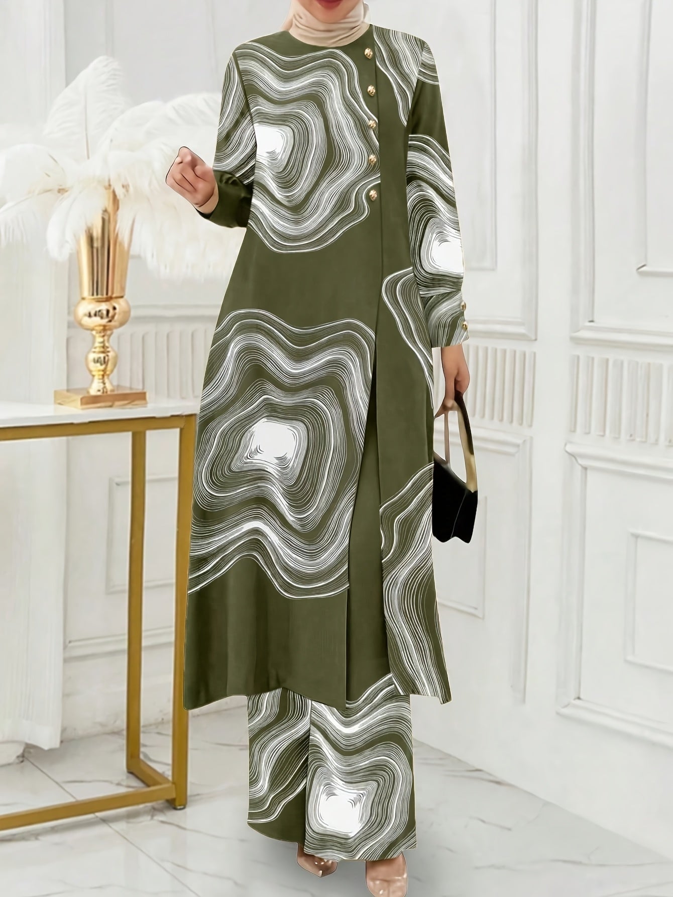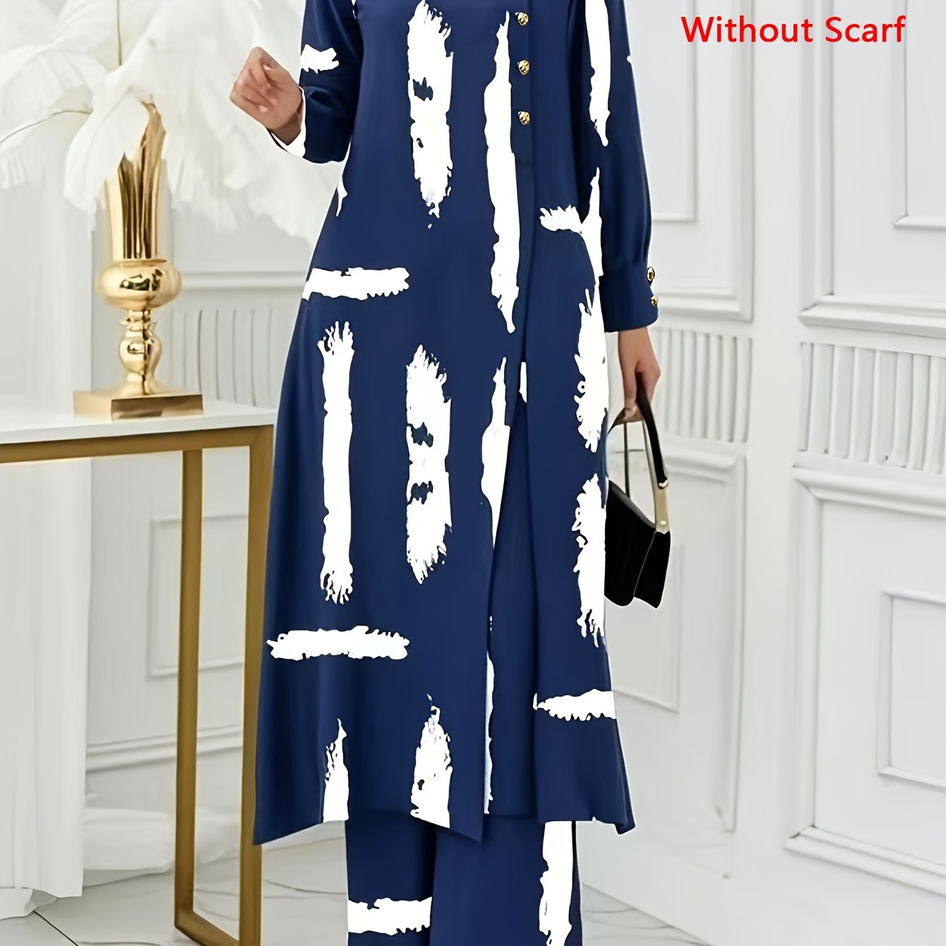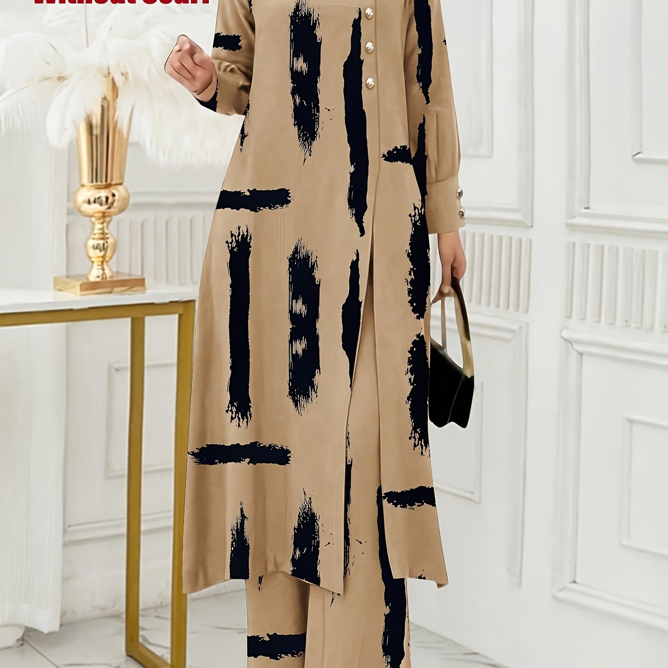 Ramadan, Women Button-Decorated Solid Color Long Sleeve Top & Pants Set, Arabic Style Clothing, Only Clothes, Without Headscarf