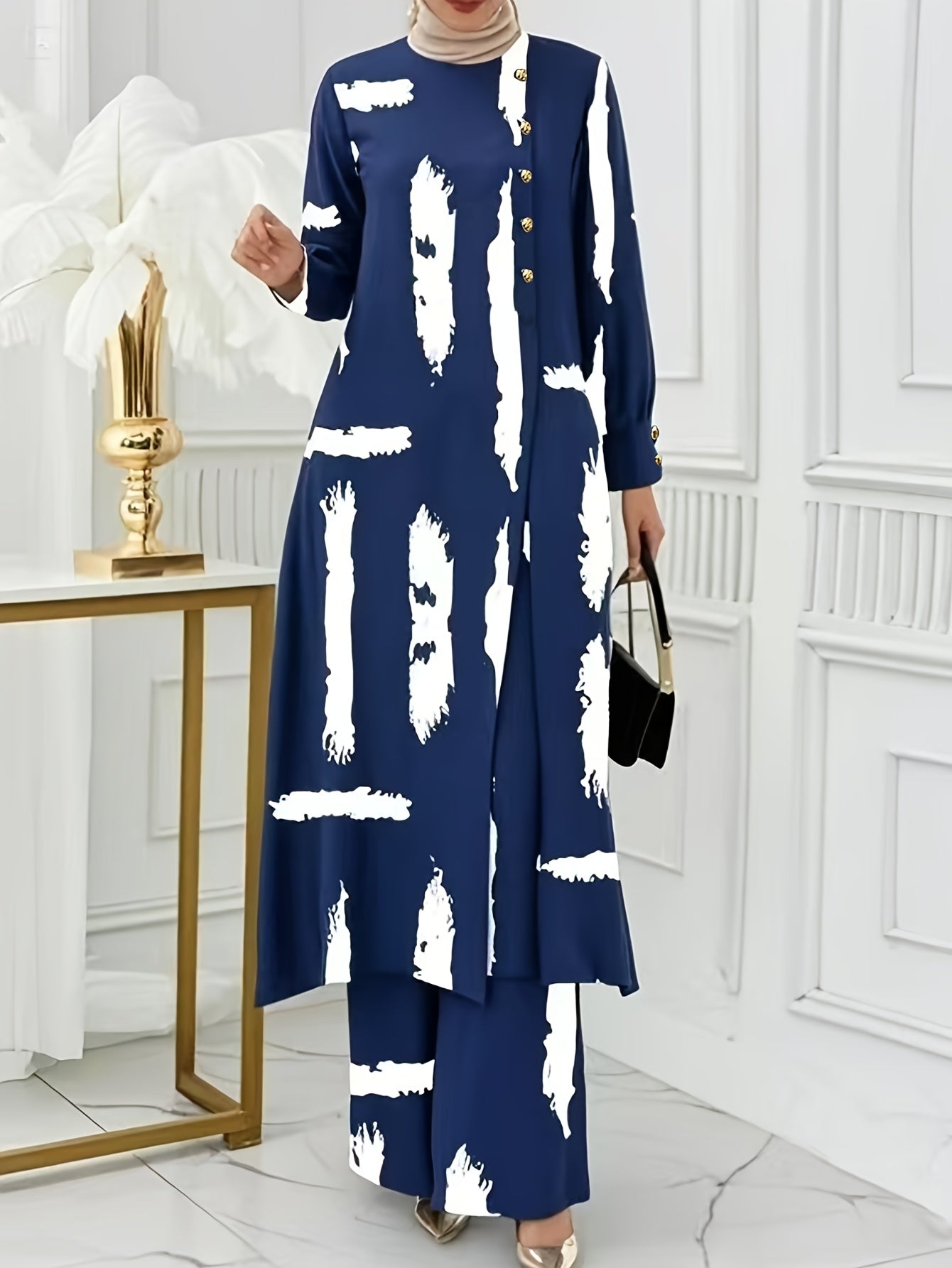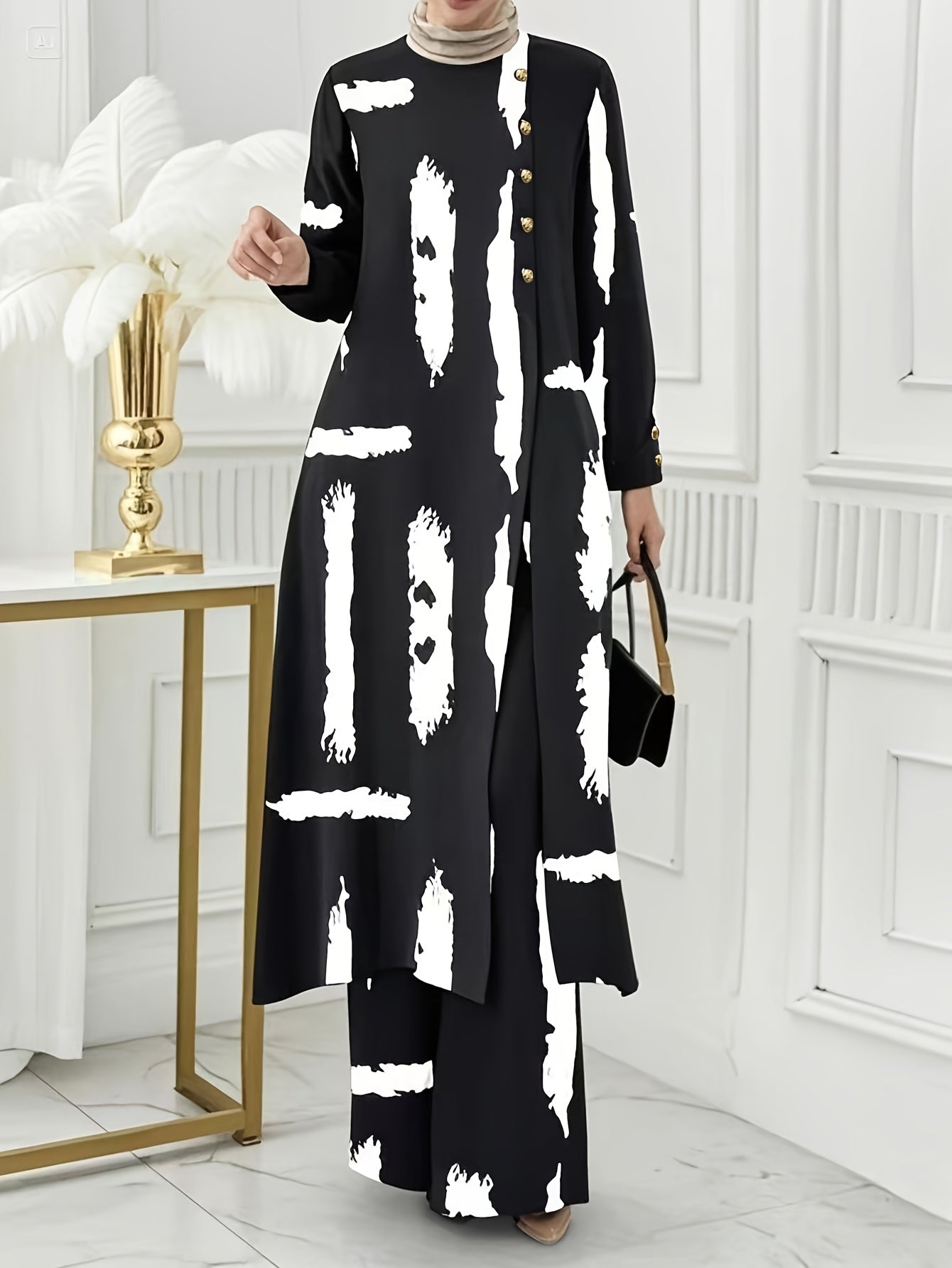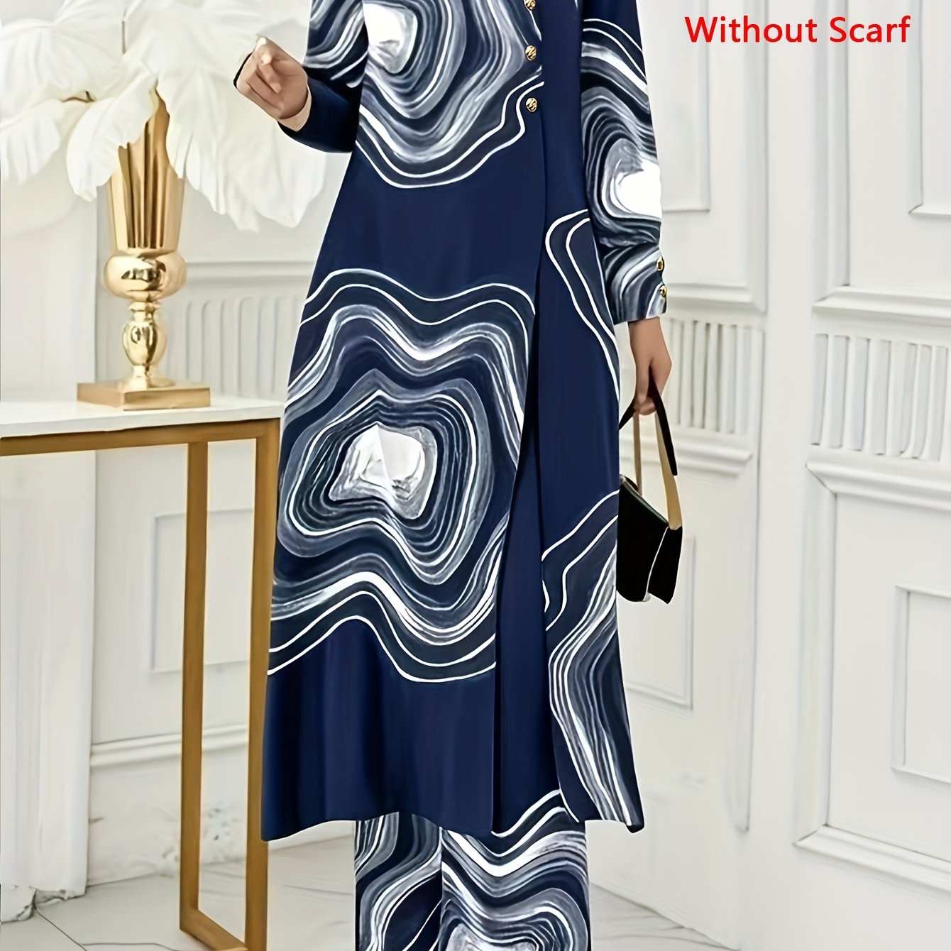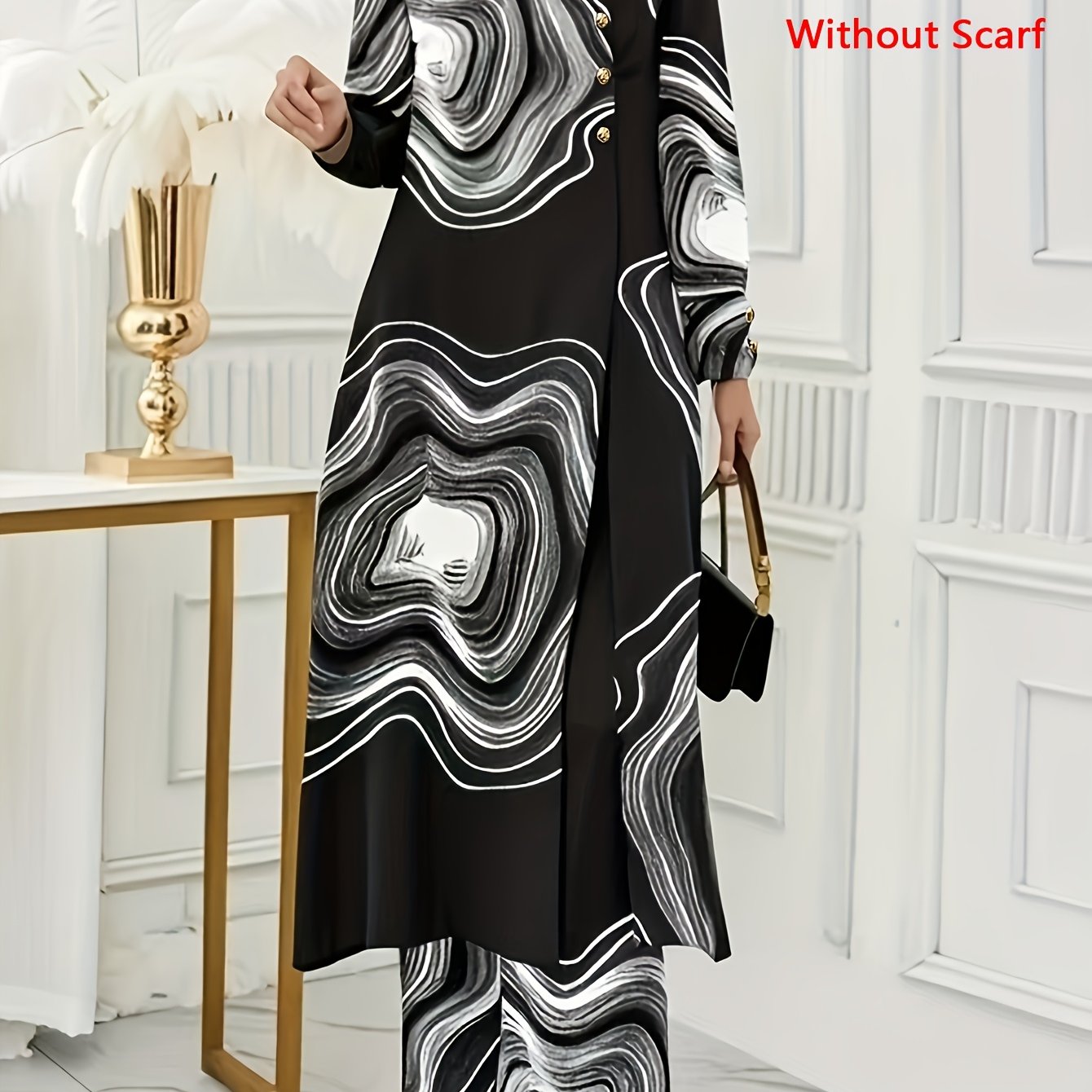 Ramadan, Women Button-Decorated Solid Color Long Sleeve Top & Pants Set, Arabic Style Clothing, Only Clothes, Without Headscarf