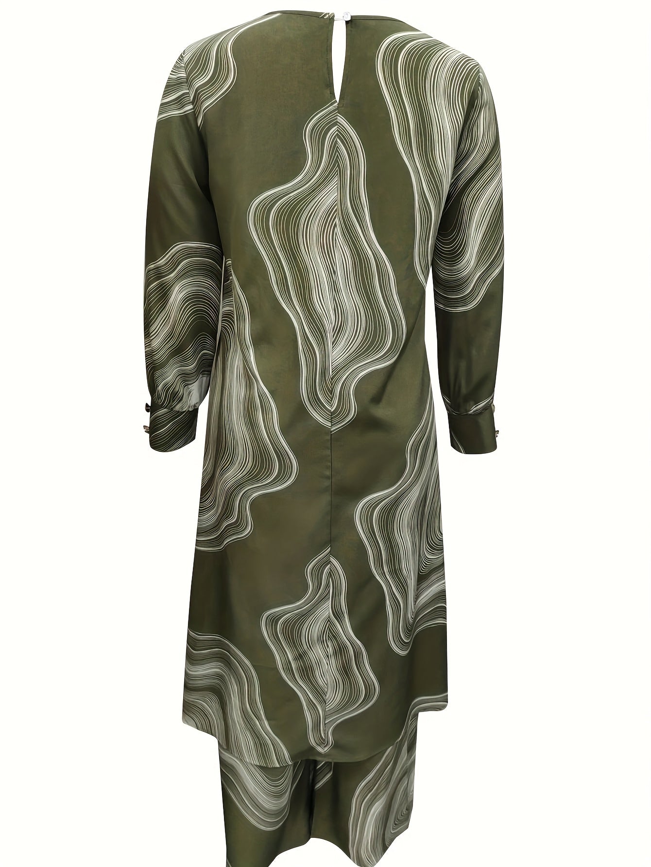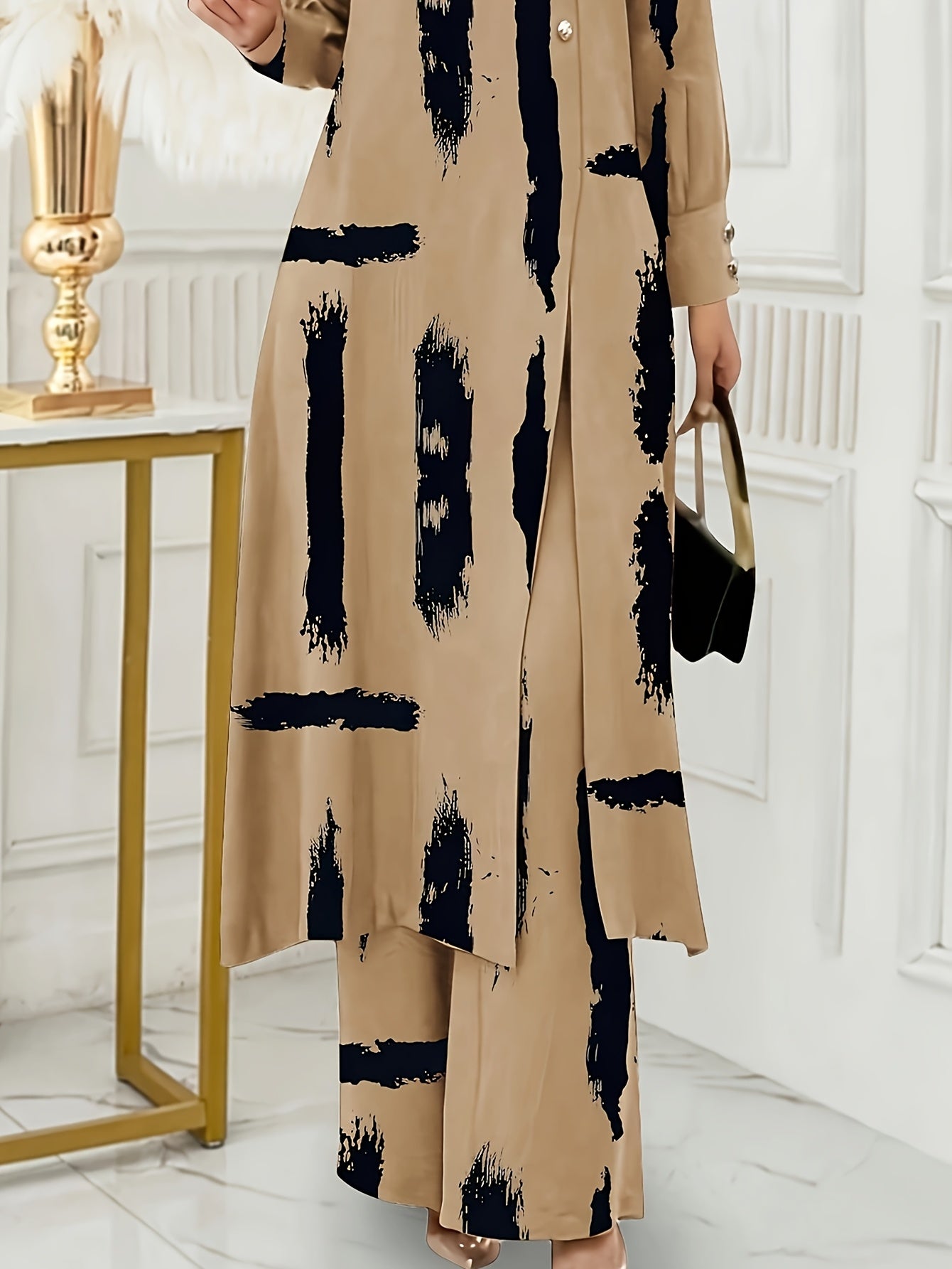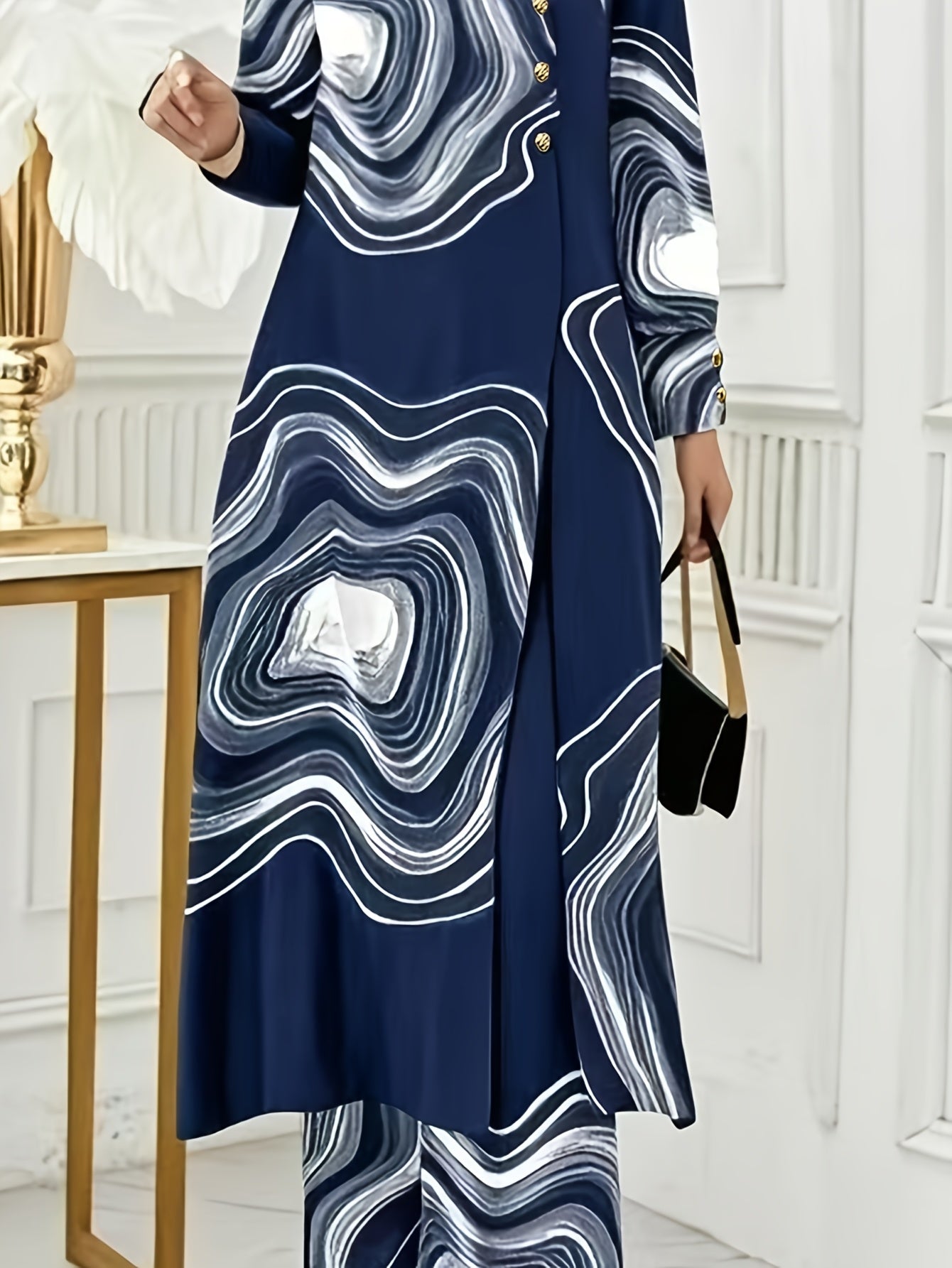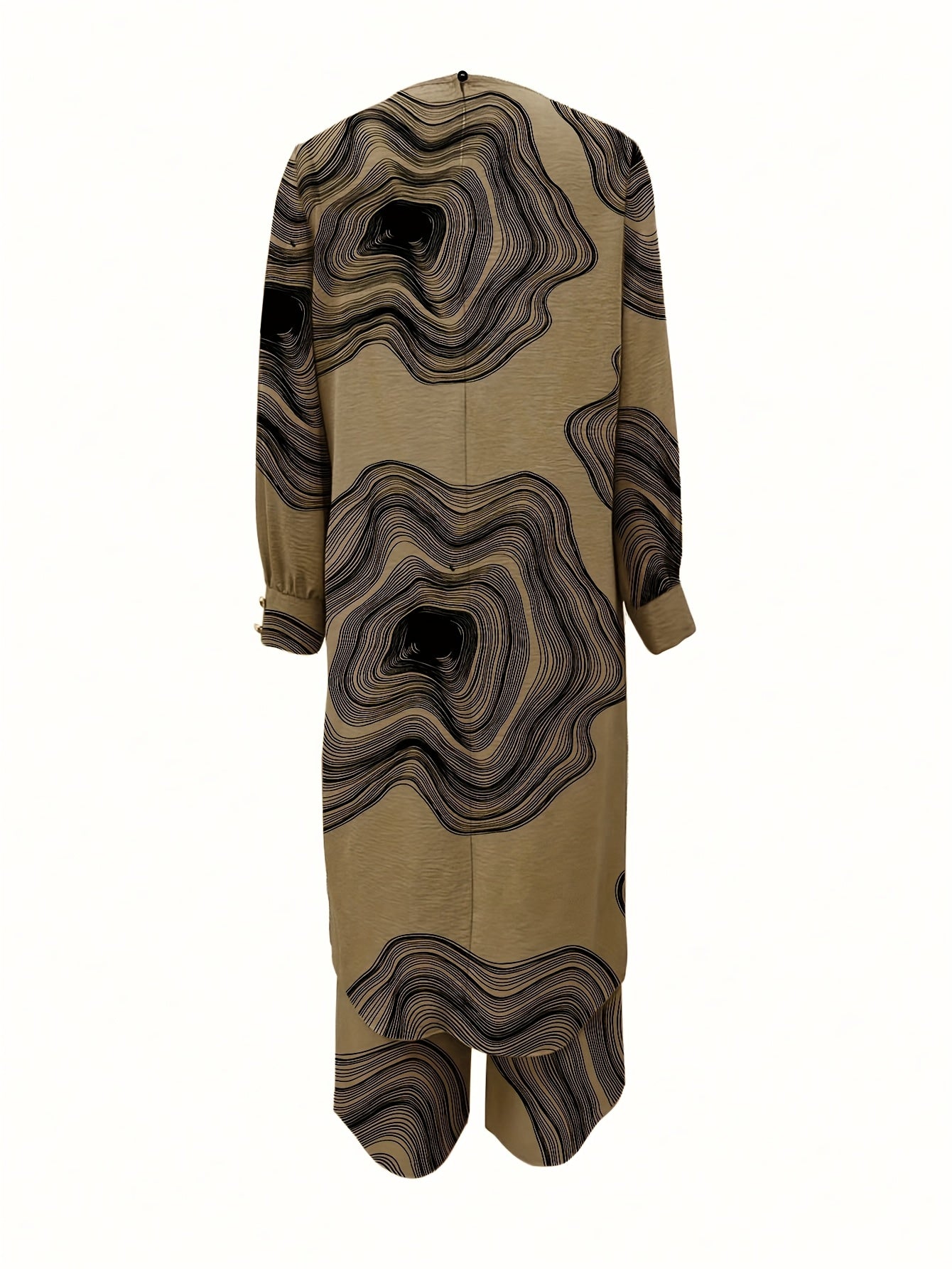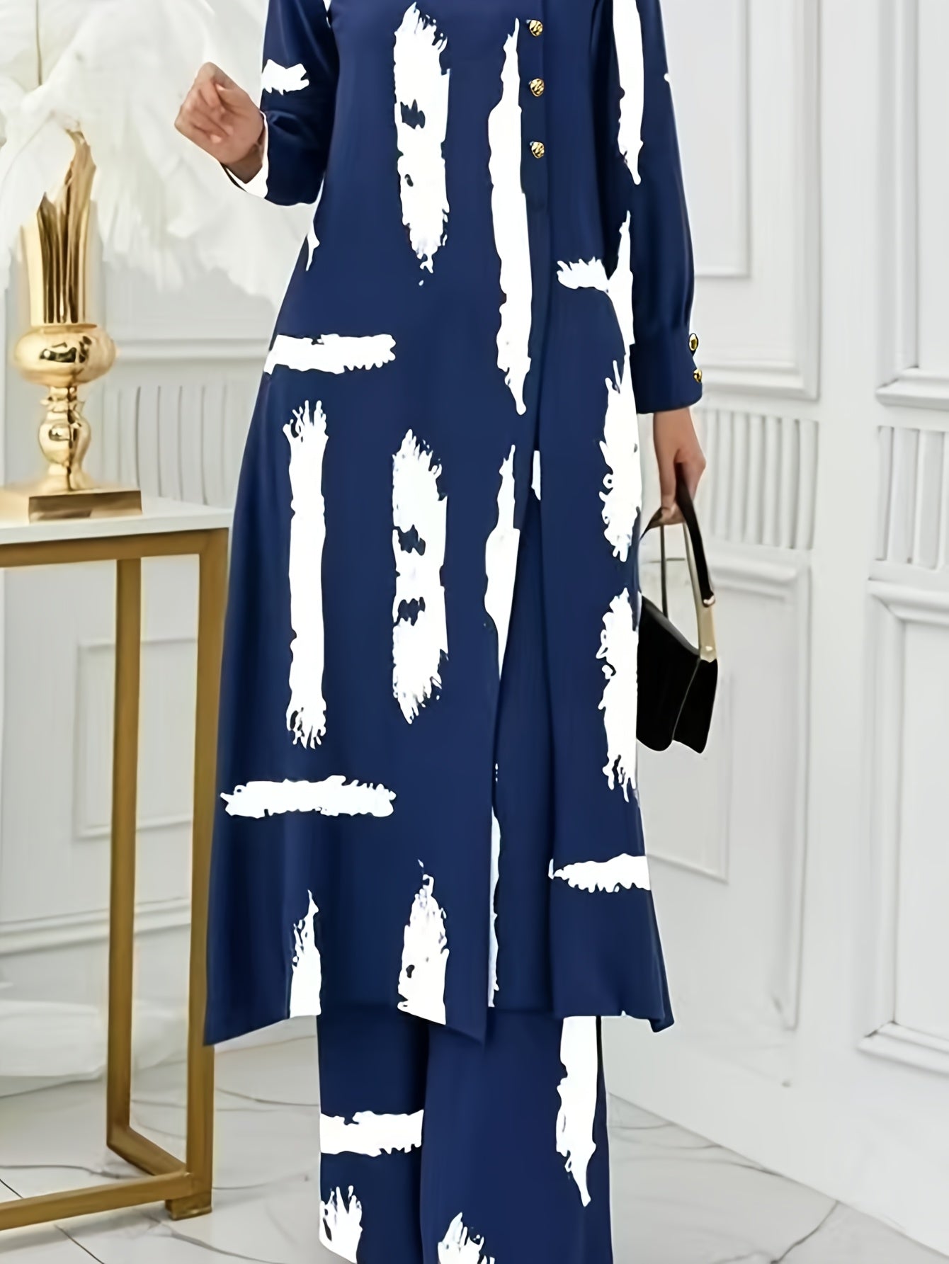 Ramadan, Women Button-Decorated Solid Color Long Sleeve Top & Pants Set, Arabic Style Clothing, Only Clothes, Without Headscarf