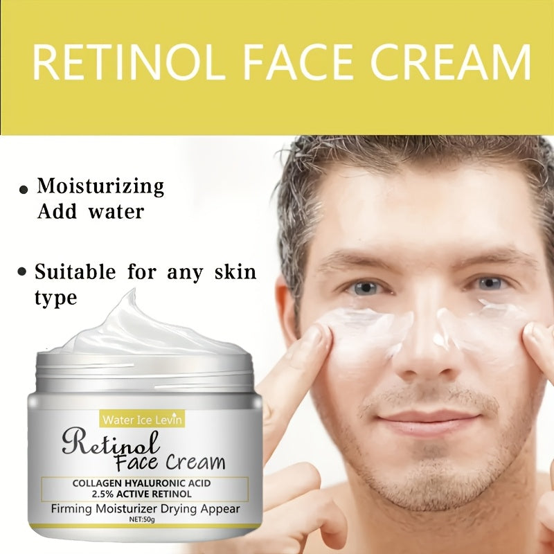 Retinol face cream with 2.5% active retinol, hyaluronic acid and collagen - moisturizing cream for men and women, can tighten and smooth skin - alcohol free, suitable for all skin types, 50g/1.76oz