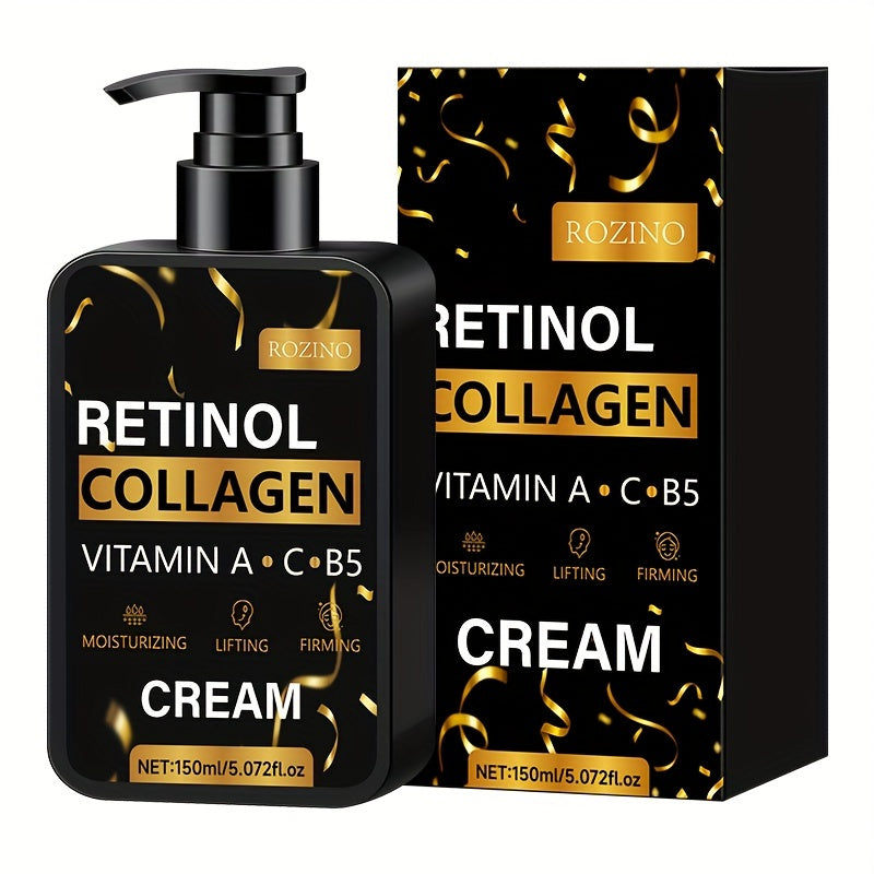 ROZINO Retinol Collagen Face Cream 5.07oz - Vitamin A, C, B5 Enriched, Hydrating & Firming Moisturizer for All Skin Types, Hypoallergenic, Reduces Fine Lines & Wrinkles, Reveals Youthful Radiance