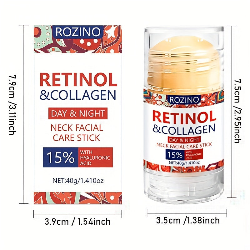 Rozino Retinol & Collagen Neck And Face Cream Stick, 40G - Deep Hydration For Soft, Firm Skin | Long-Lasting Moisture | Hypoallergenic With Glycerin | For All Skin Types