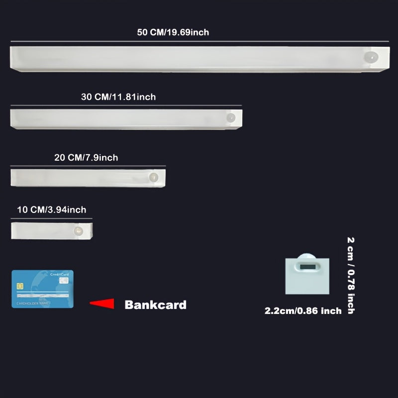 Smart Switch LED Light Human Motion Sensor Long Strip Wireless Magnetic Self-Adhesive Wardrobe Light with Charging Cabinet Light Bar for Countertop Closet Lighting, Rechargeable Kitchen Night Light Battery Powered Lamp for Wa