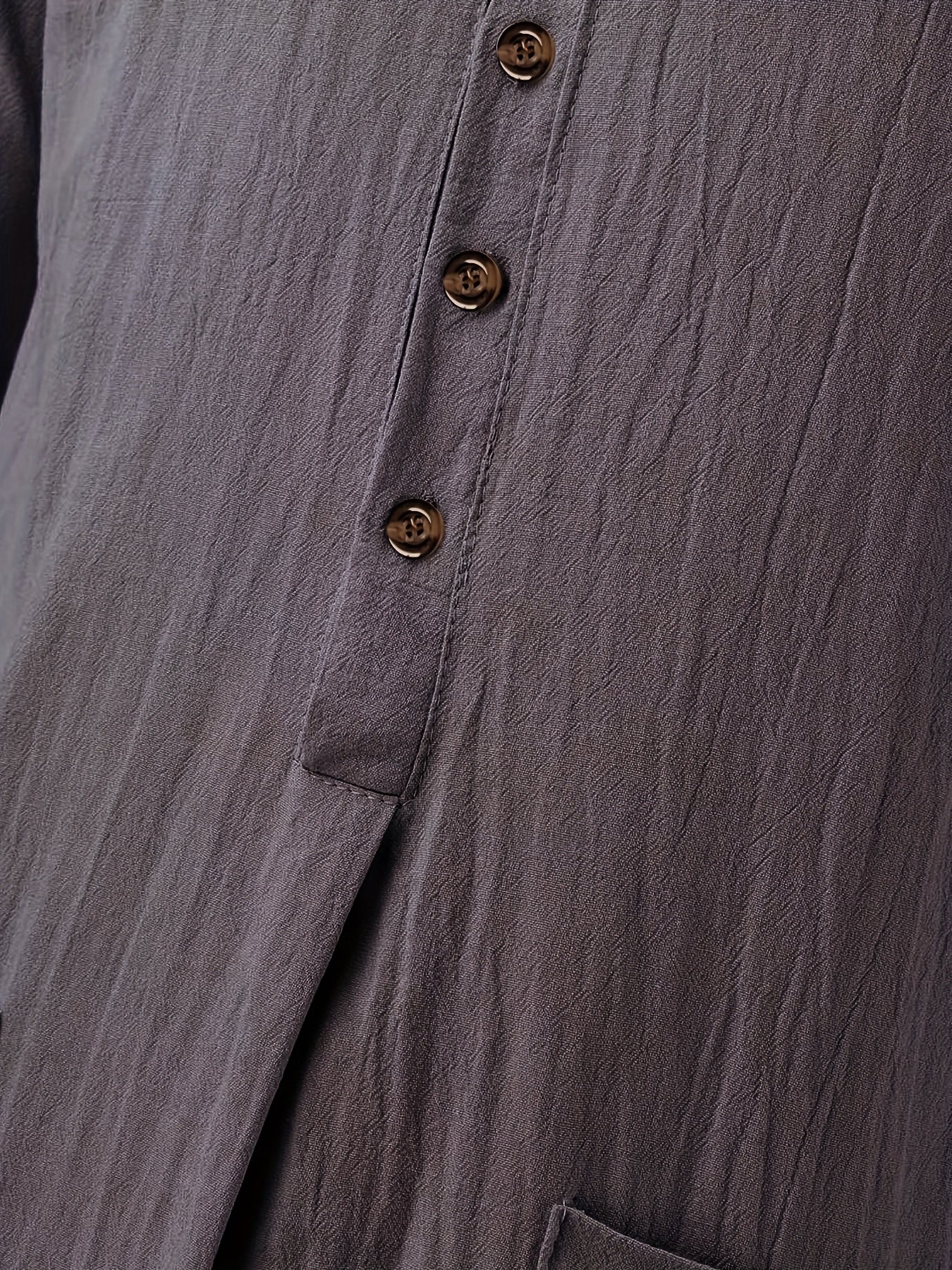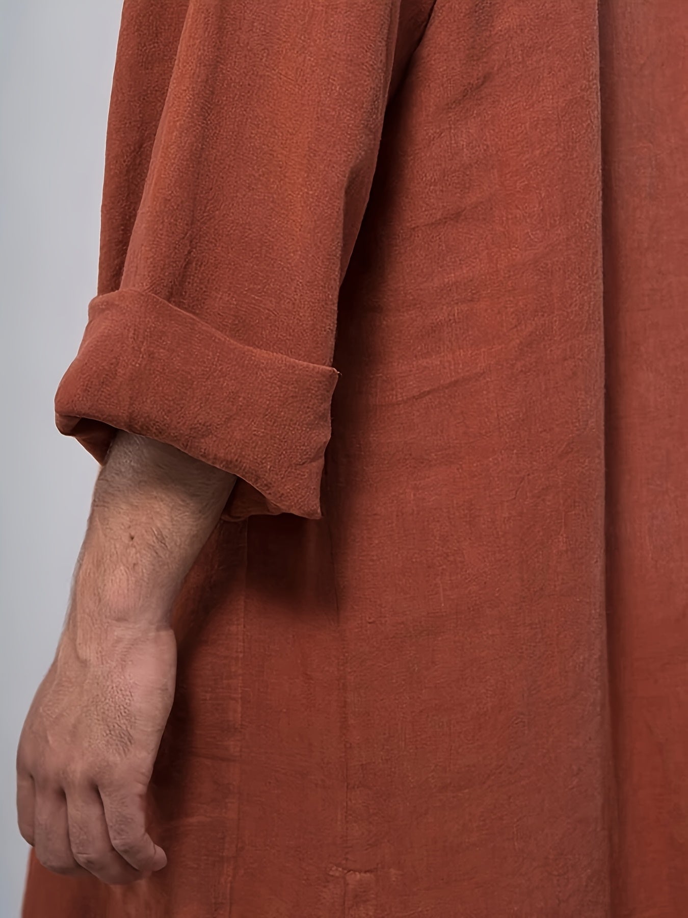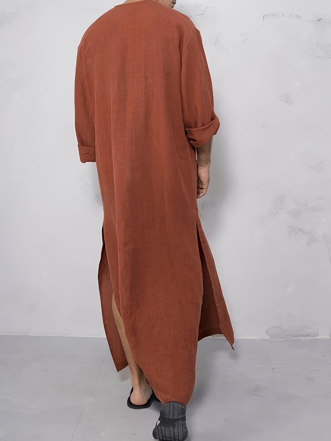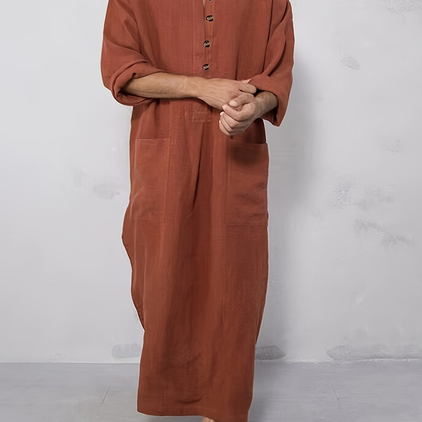 Southeast Asian Men's Loose Striped Round Neck Long Sleeve Muslim Robe Hoodie Pocket Middle Eastern Abaya