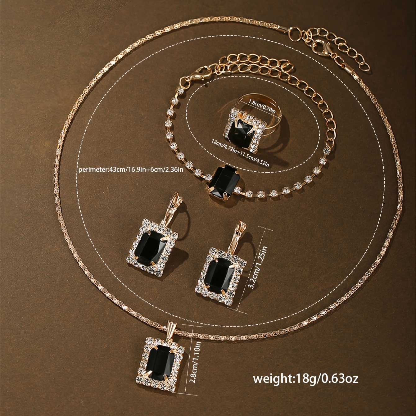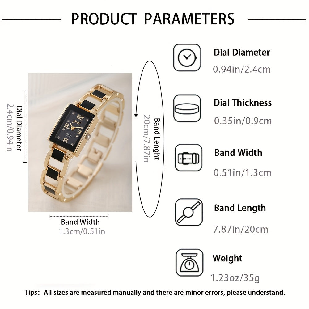 Stylish and Versatile Vintage Minimalist Quartz Watch Set of 5 Black Square Rhinestones Jewelry, Elegant Overall Look | Vintage Minimalist Watch