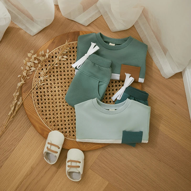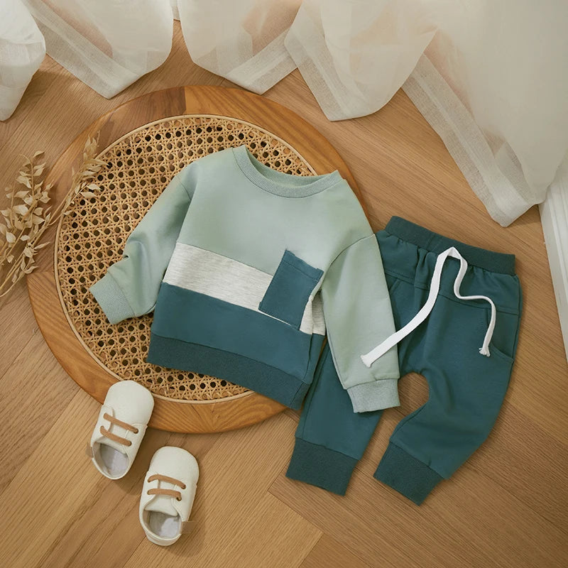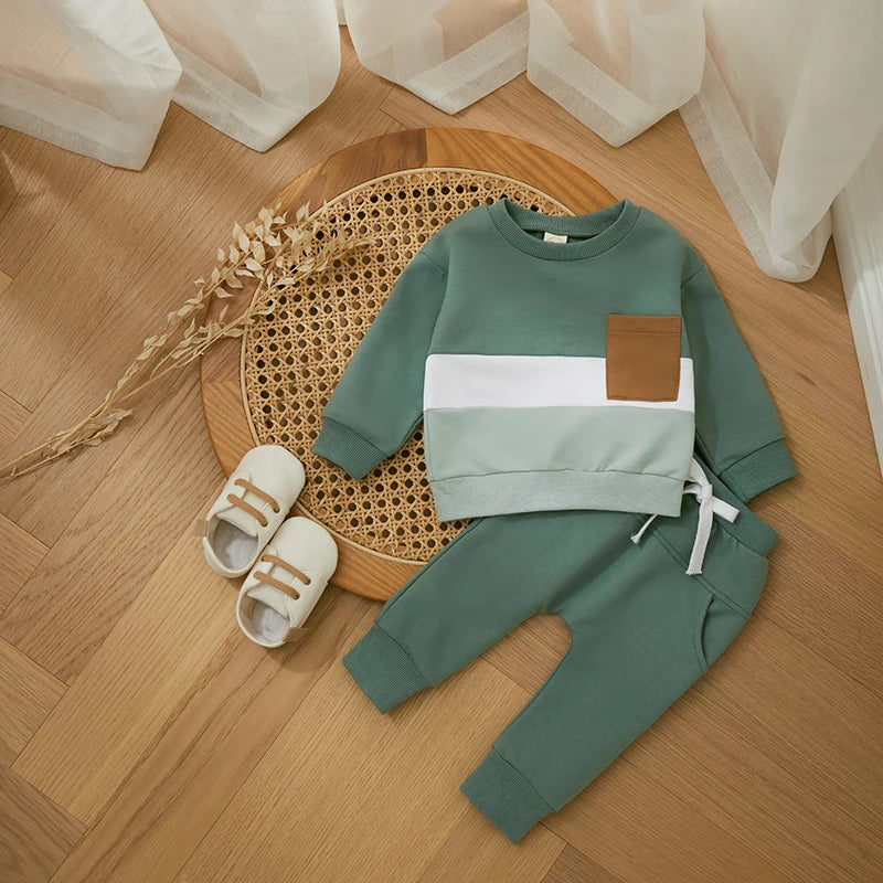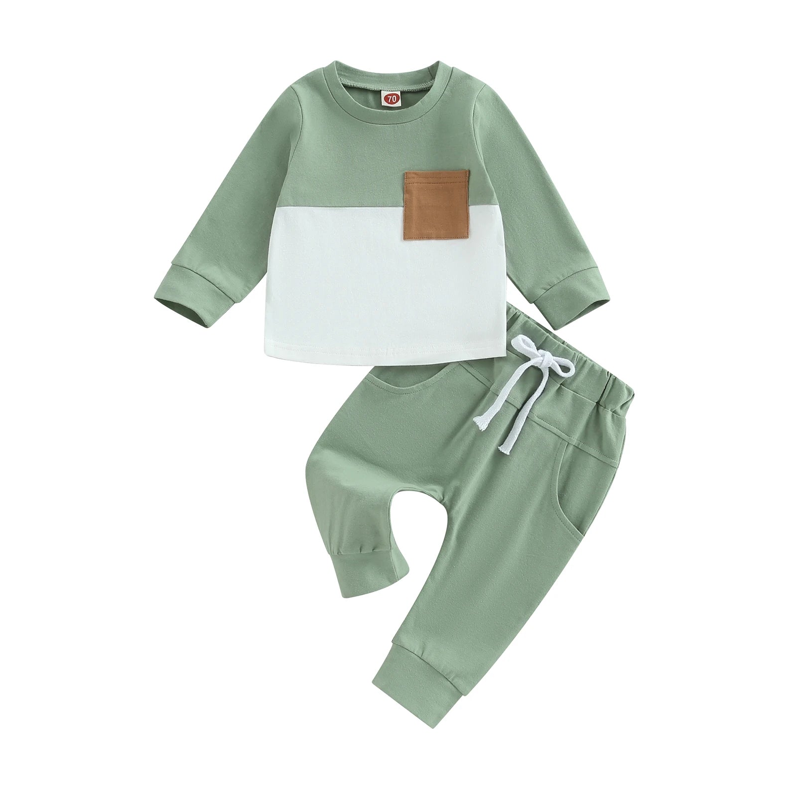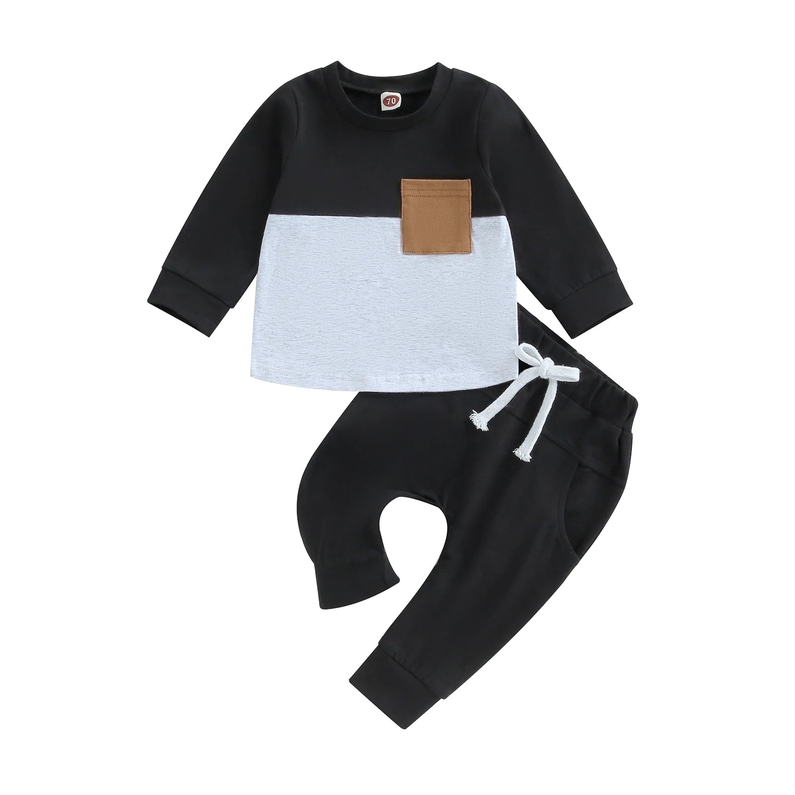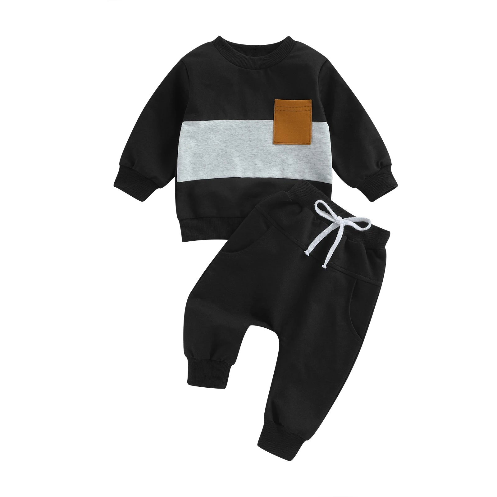 Survêtement d'hiver 2 pièces pour bébé, tenues pour garçons en bas âge, couleur contrastée, sweat-shirt à manches longues, hauts et pantalons longs, ensemble de vêtements pour tout-petits