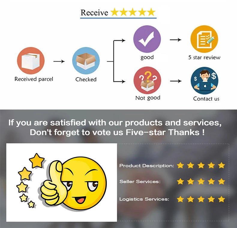 7. Commentaires: Si vous êtes satisfait de nos produits, veuillez me donner un bon commentaire et 5 étoiles, merci. Si vous n'êtes pas satisfait de nos produits, veuillez nous contacter, dites-moi quel est le problème, nous vous aiderons à résoudre le problème. Parce que notre objectif est: 100% satisfaction du client.
