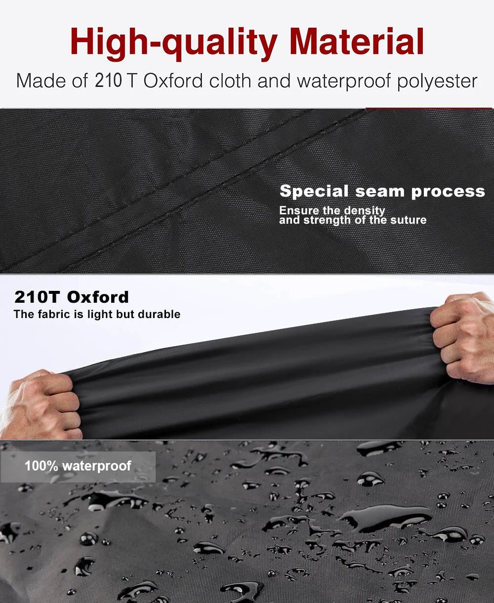 【Qualité】Le tissu avec du tissu Oxford 210T de haute qualité est sélectionné, imperméable et durable, cousu avec un double espace spécial, assurez-vous de l'étanchéité et de la résistance de la couture.
