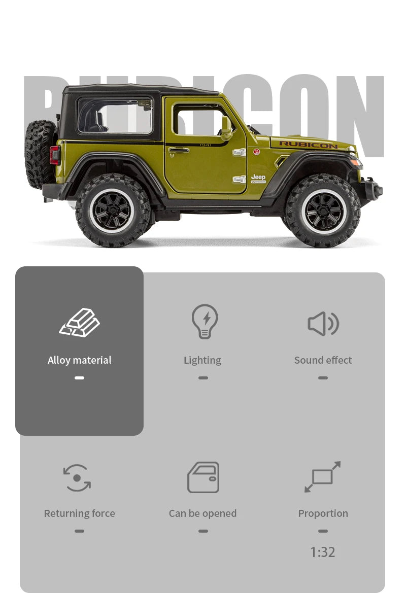Tout-terrain 7 portes pour modèle de voiture jouet Wrangler moulé sous pression, véhicule en alliage métallique à l'échelle 1/32 pour enfants garçons filles adultes, portes ouvertes, légères