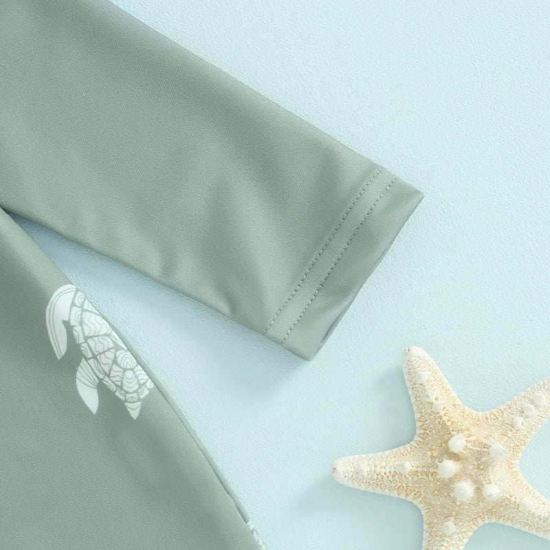 Tregren – maillot de bain pour garçons, protection contre les éruptions cutanées, manches longues, imprimé tortue/dinosaure, avec bonnets de bain, vêtements de plage