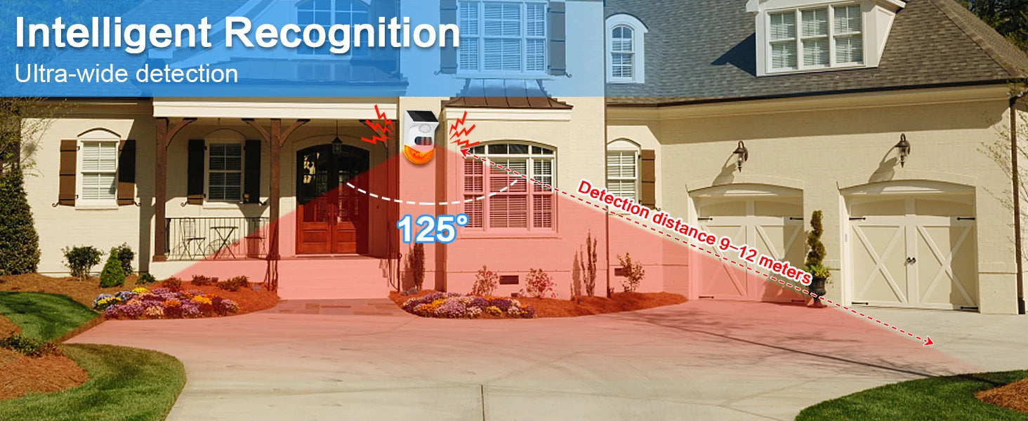 【Sirène forte et capteur de mouvement sensible】 Le détecteur de mouvement d'alarme solaire a un angle de détection de 110°, il détectera tout mouvement dans une portée de 9 à 12 mètres (affecté par l'environnement). Le son de la sirène est de 120 dB, ce qui peut protéger les endroits dont vous avez besoin d'une alarme de sécurité contre les intrusions.