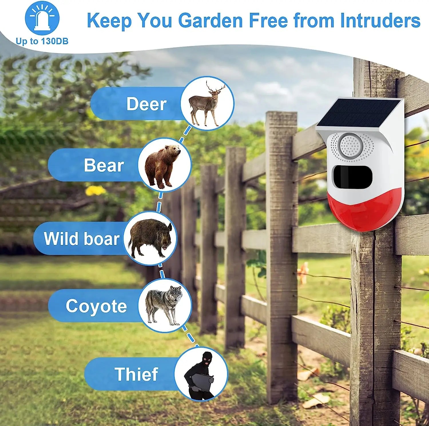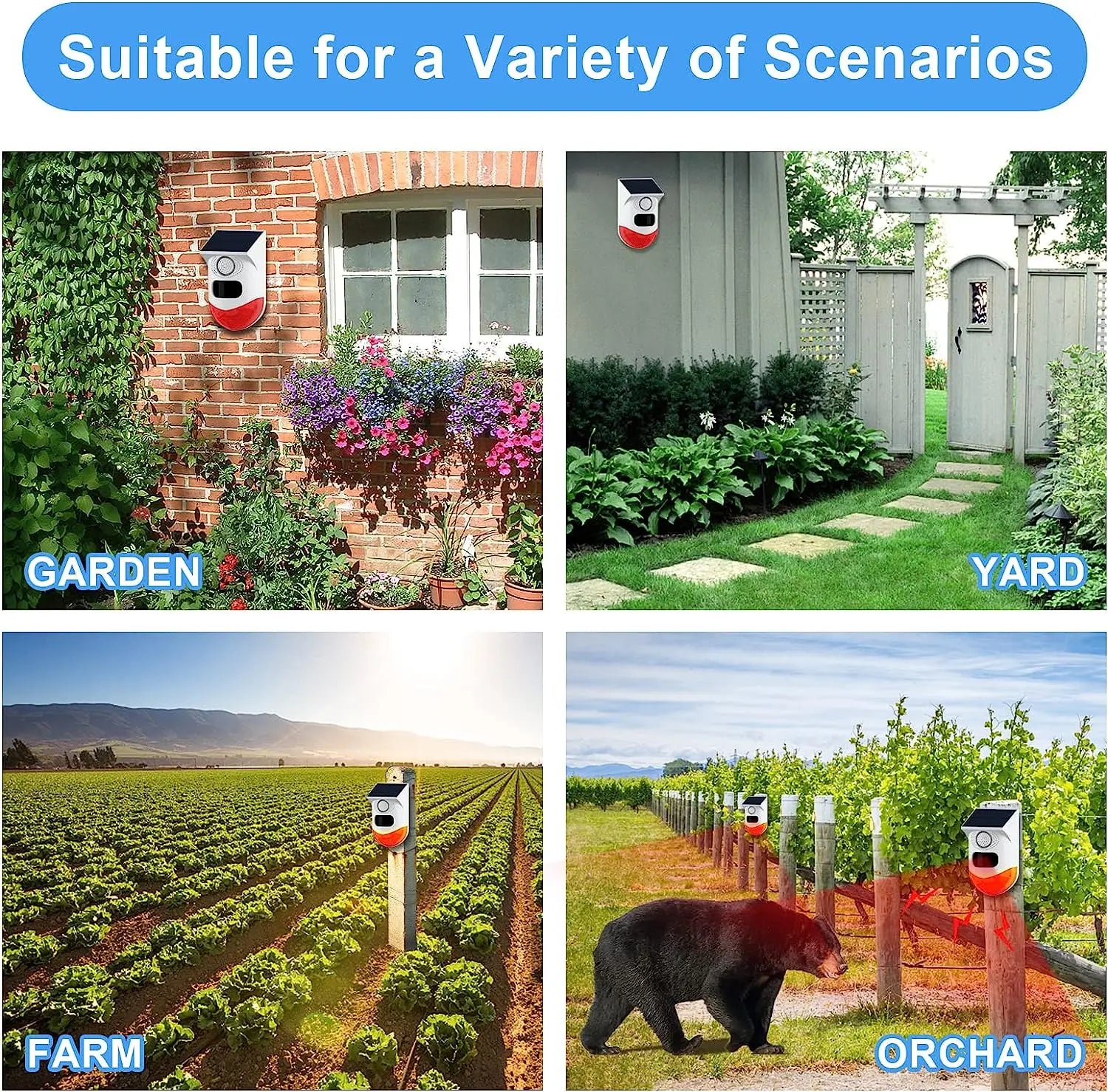 Large application : la lampe d'alarme solaire stroboscopique est adaptée pour la sécurité des maisons résidentielles, des fermes, des villas, des hôtels, des marchés, des pensions et d'autres endroits nécessitant une alarme de sécurité, peut efficacement chasser les animaux et identifier les animaux, sans fausses alarmes.