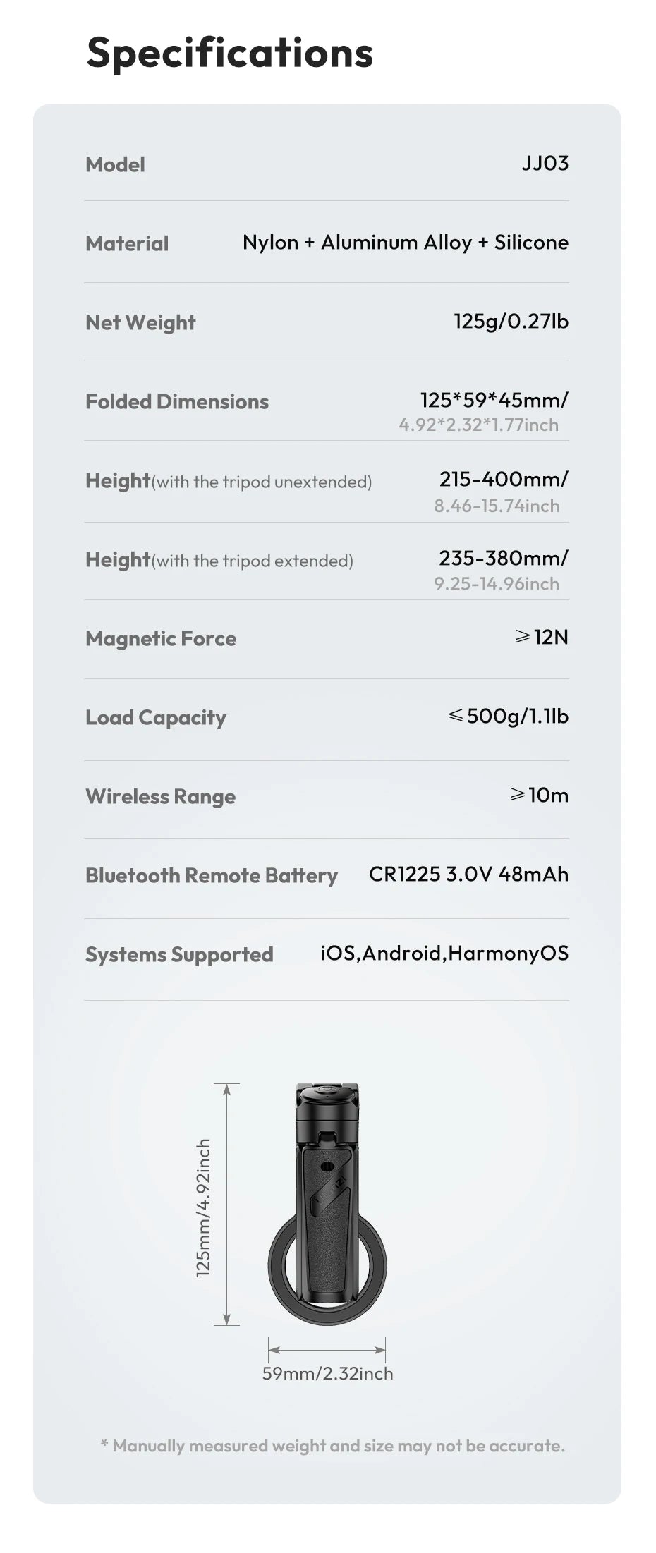 Ulanzi JJ03 Trépied de téléphone magnétique sans fil poignée de téléphone Selfie bâton trépied de bureau