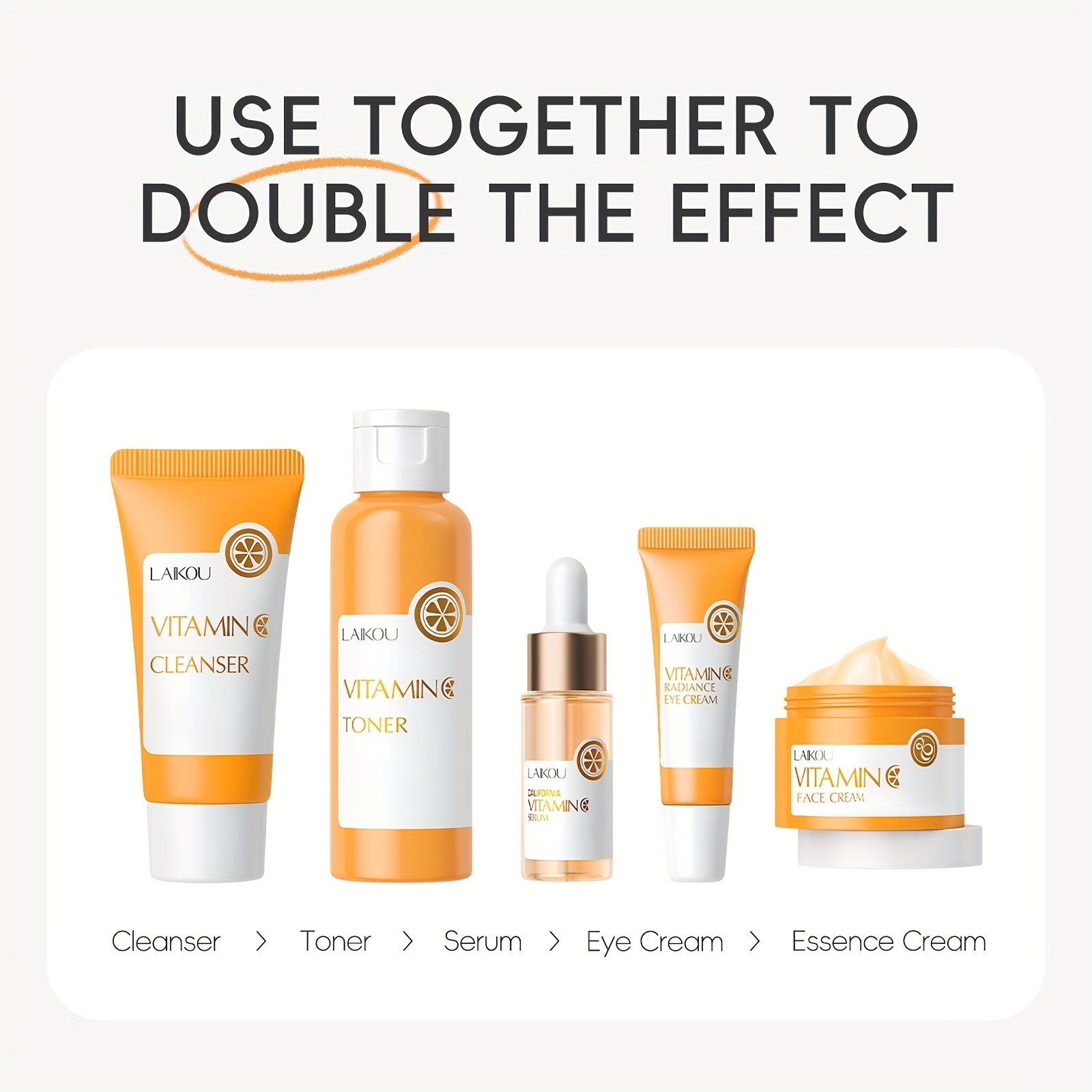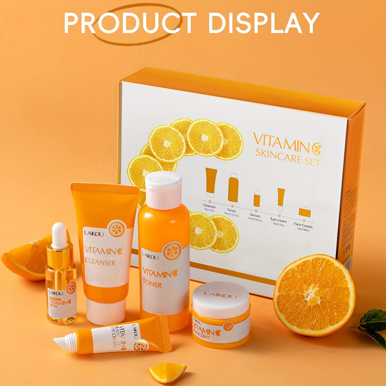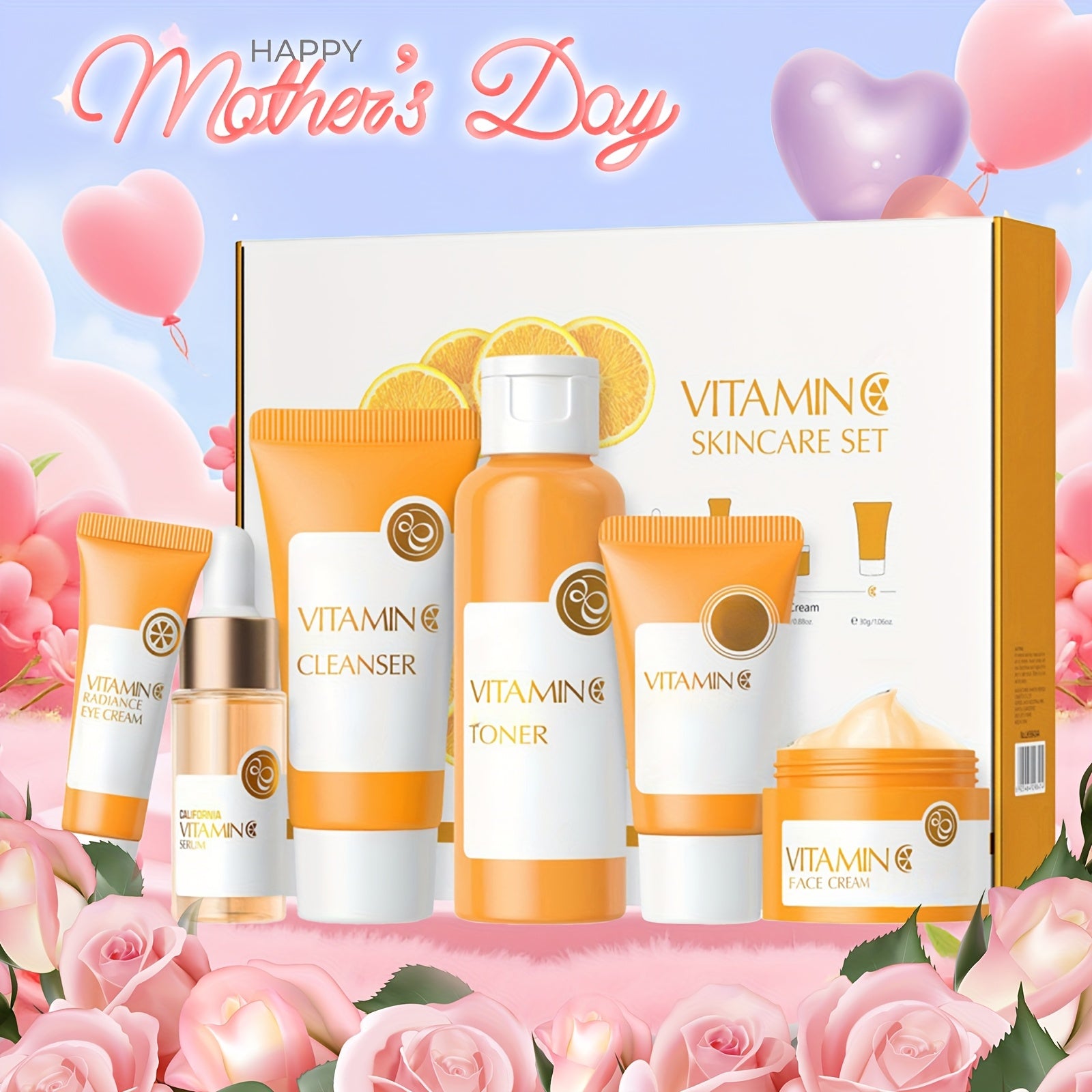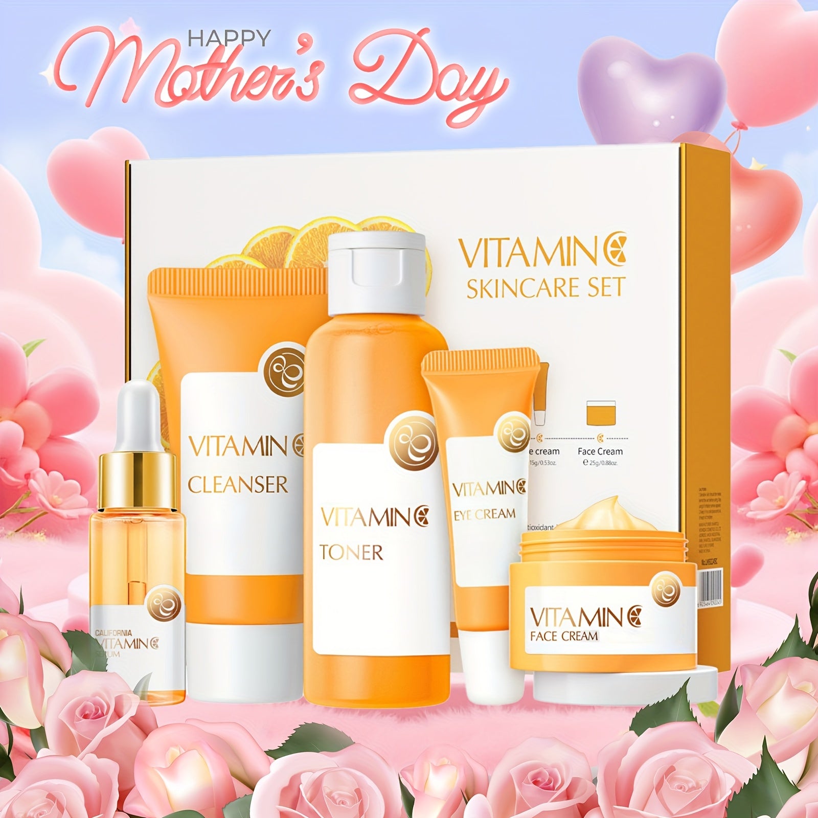 Vitamin C Skincare Set, 5 In 1 Skincare Gift Set With Cleanser, Toner, Face Serum, Face Cream And Eye Cream, Skin Care Products For Teen Girls, Long-Lasting Moisturizing Skincare Gift Set Birthday Mother'S Day Gifts For Women