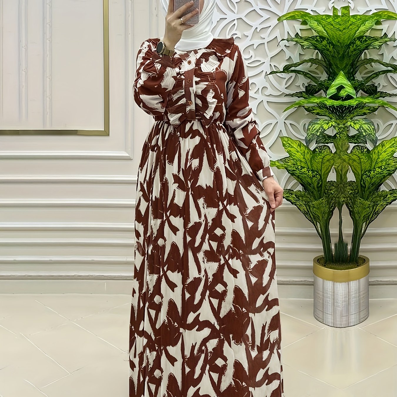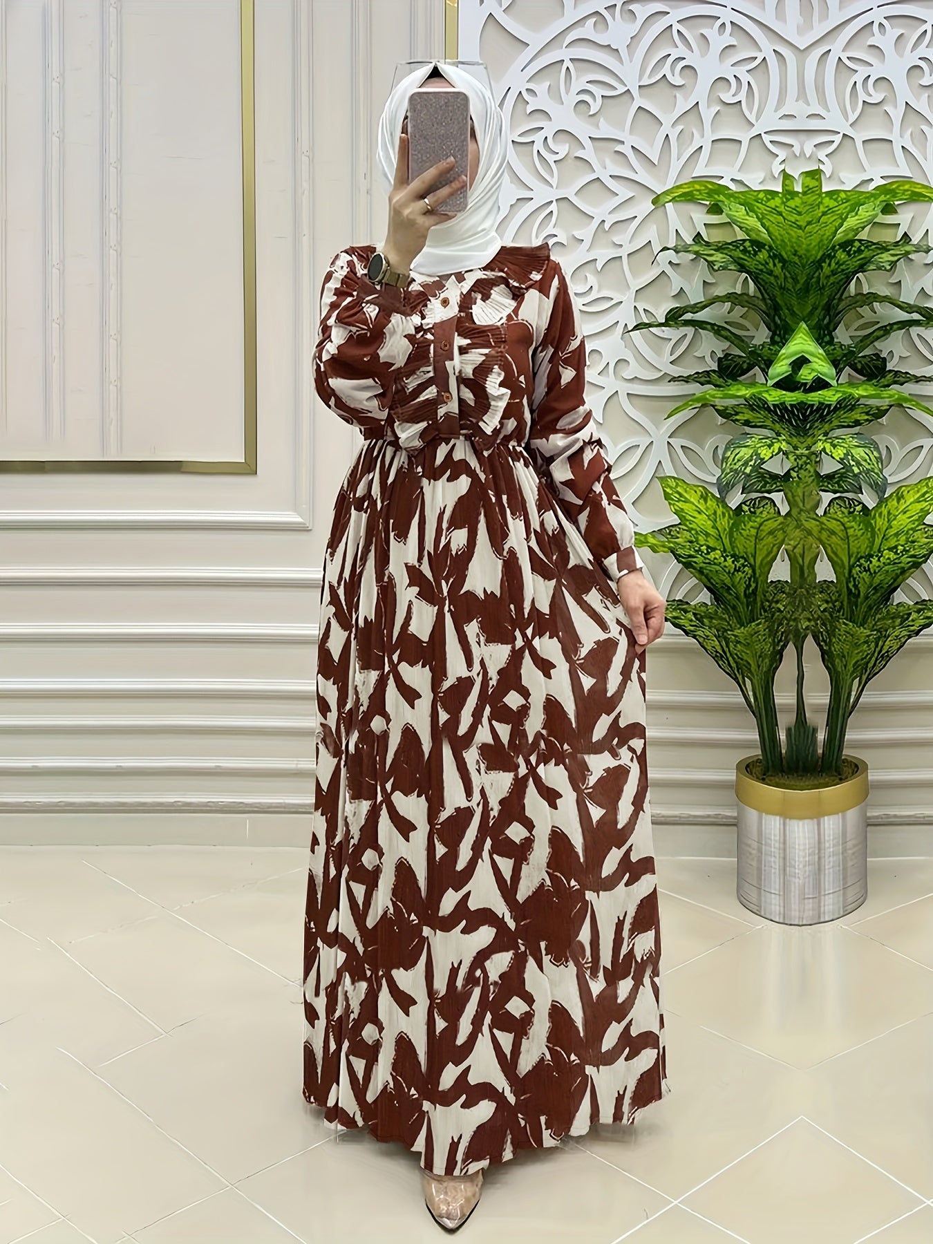 Women's Middle Eastern Muslim Print Long Dress - Elegant, Comfortable, Stylish for Modest Fashion