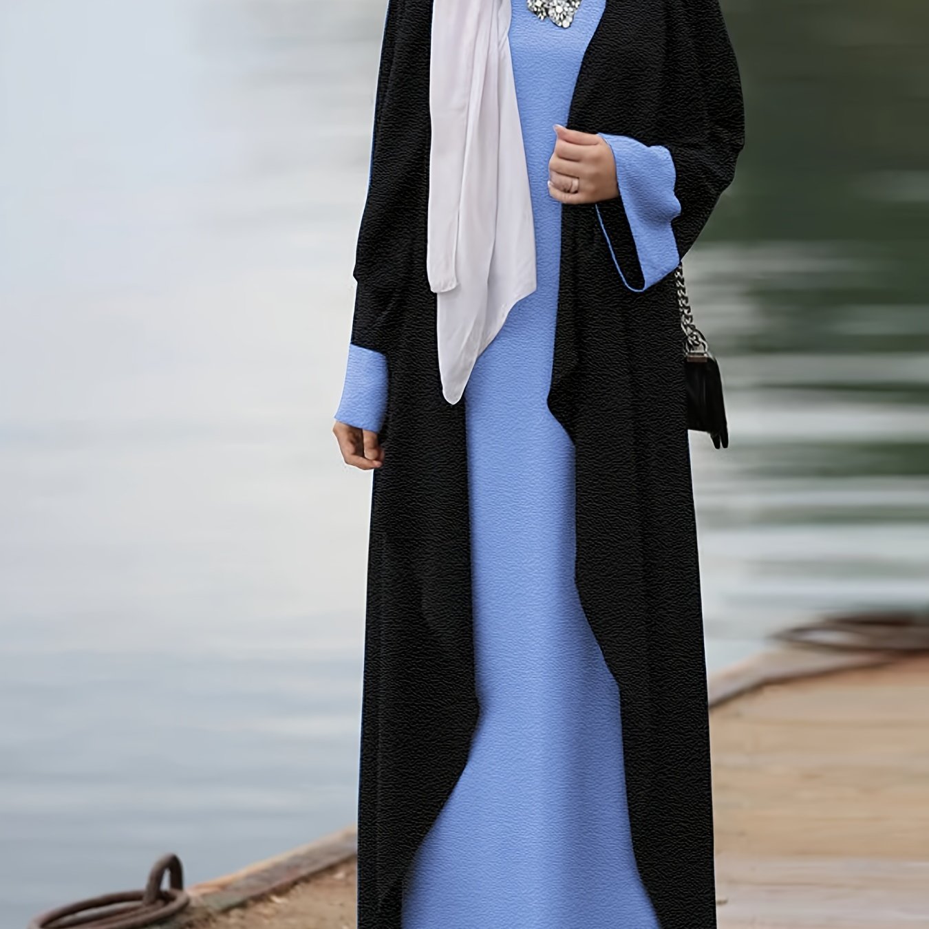 Women's Middle Eastern Muslim Solid Color Long Dress + Robe Jacket Two-Piece Set