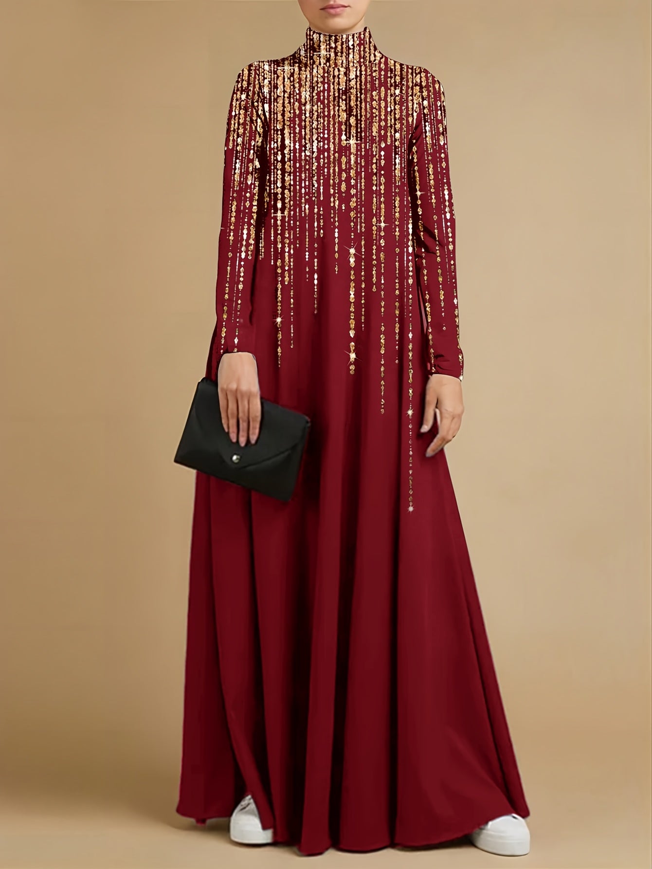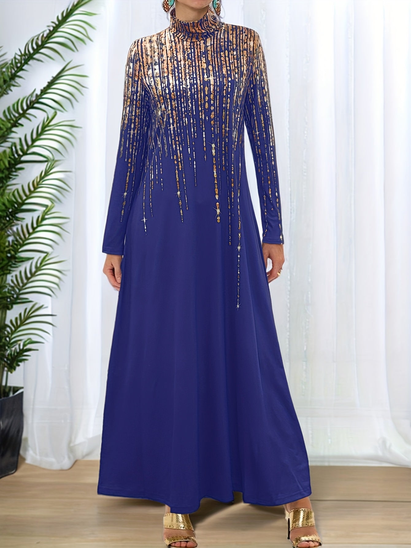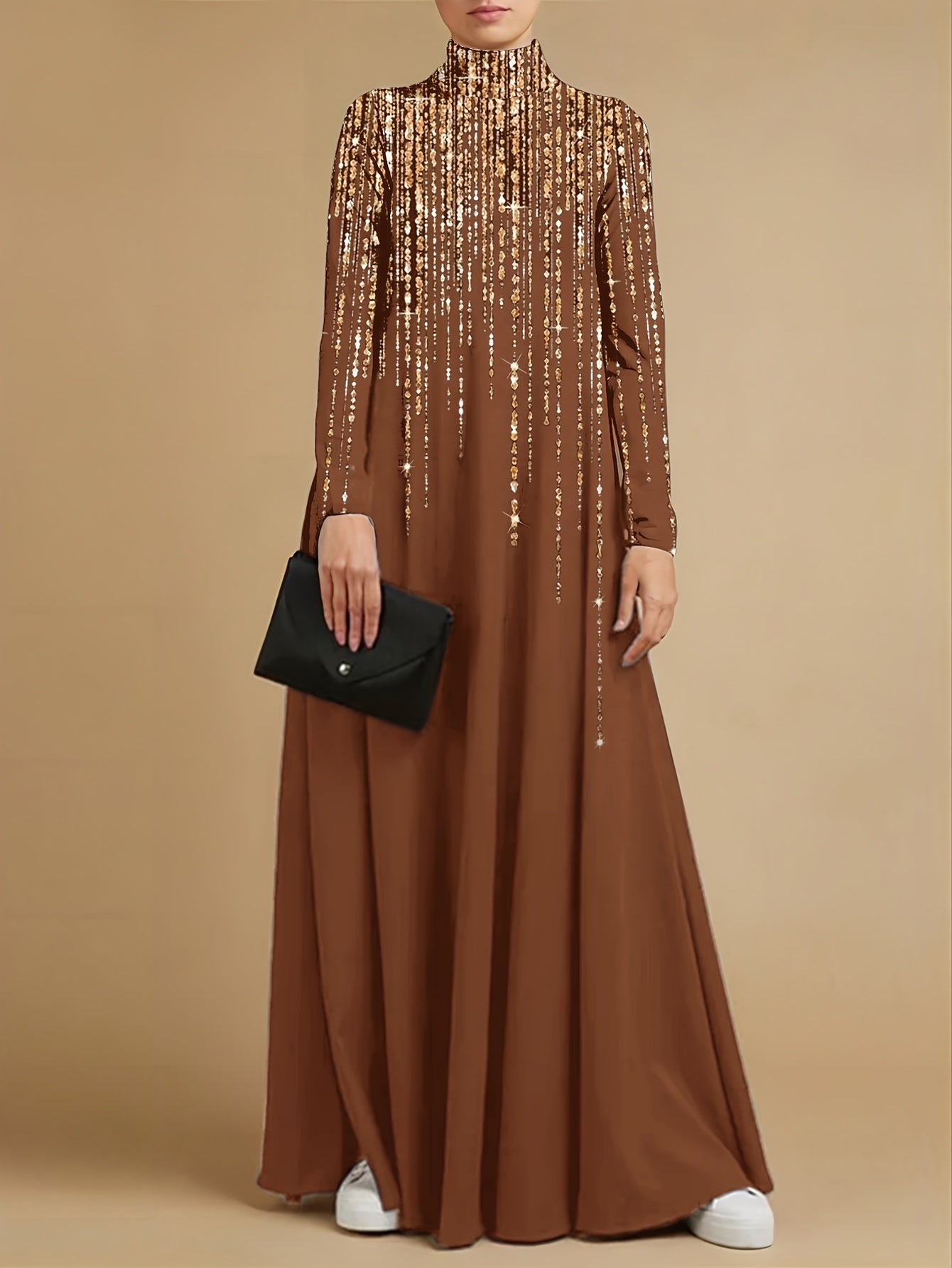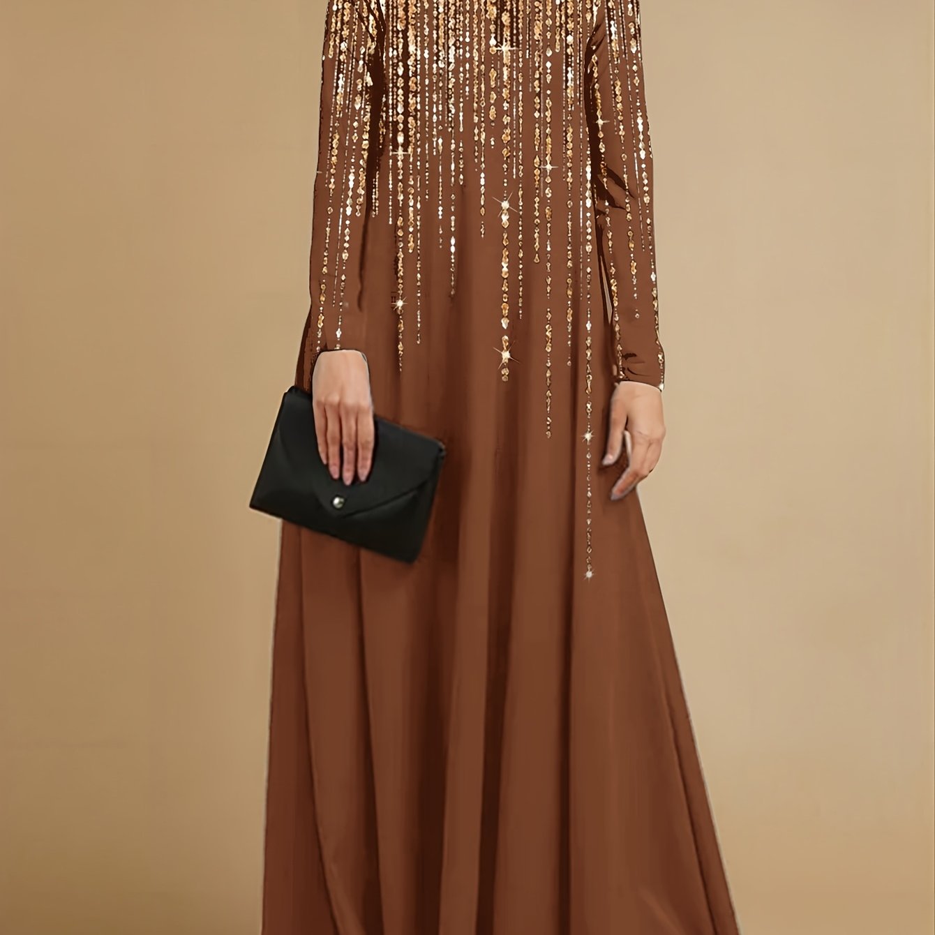 Women's Modest Arabian Abaya Robe - High Neck Long Sleeve Geometric Print Casual Dress, Machine Washable Stretchy Fabric for Muslim Women, All-Season Wear, Comfortable Clothing, Festive Attire, Durable Clothing