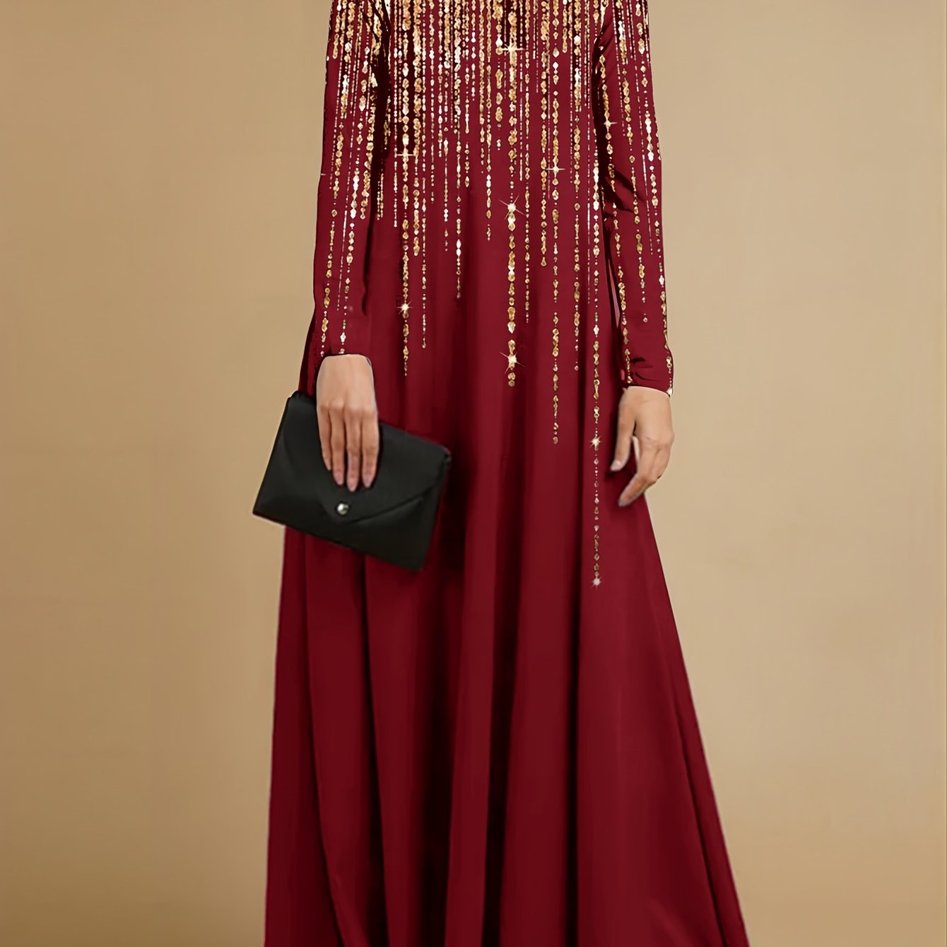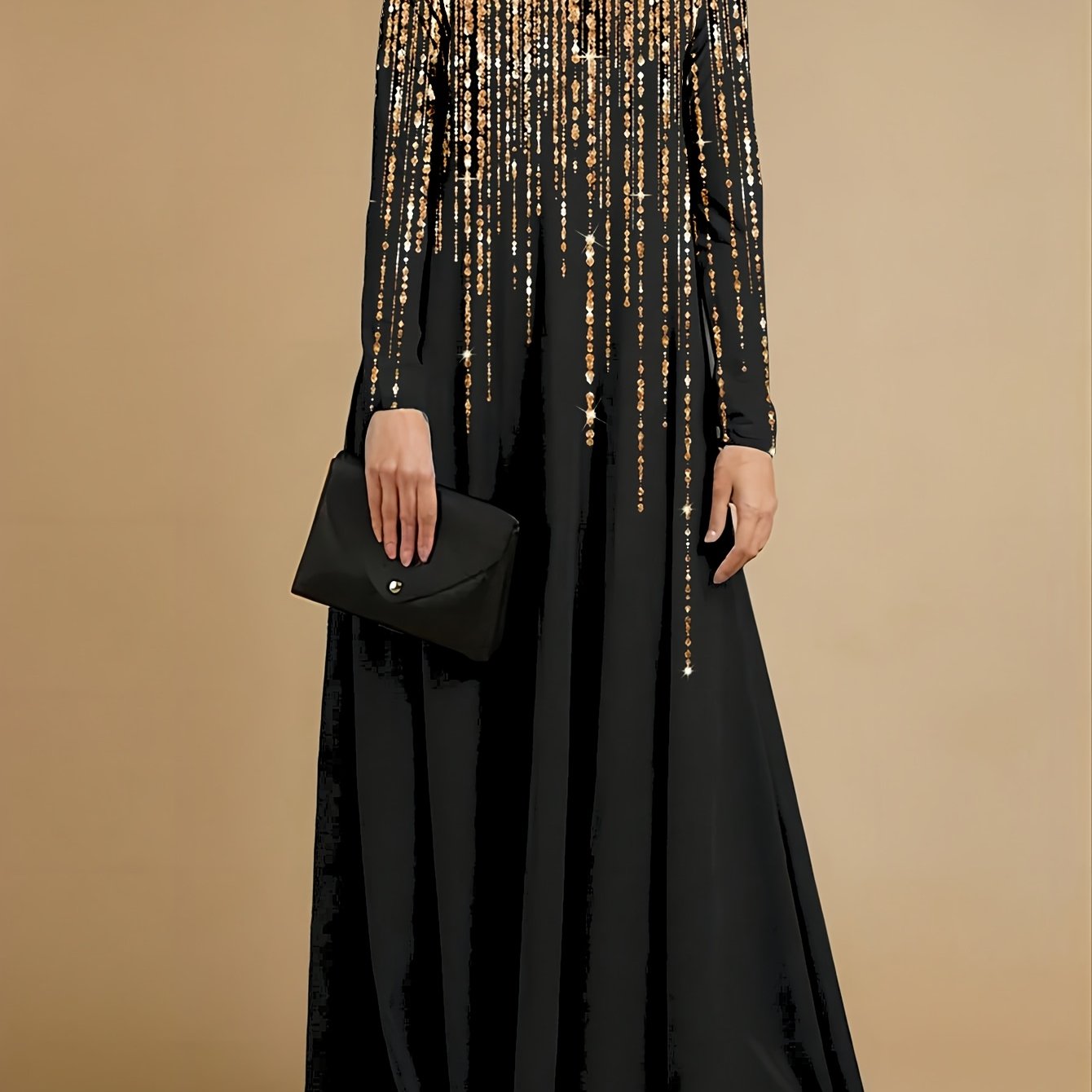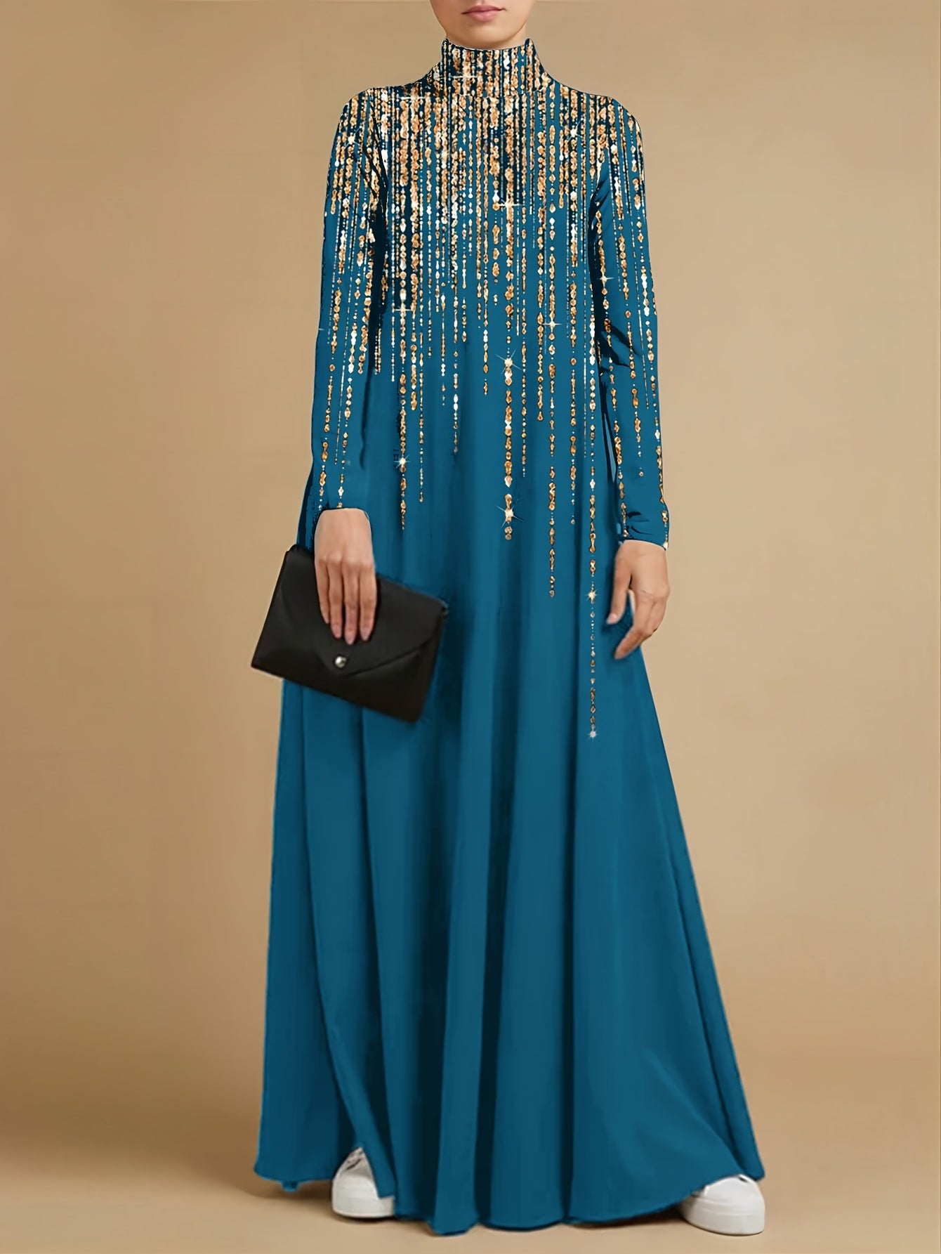 Women's Modest Arabian Abaya Robe - High Neck Long Sleeve Geometric Print Casual Dress, Machine Washable Stretchy Fabric for Muslim Women, All-Season Wear, Comfortable Clothing, Festive Attire, Durable Clothing