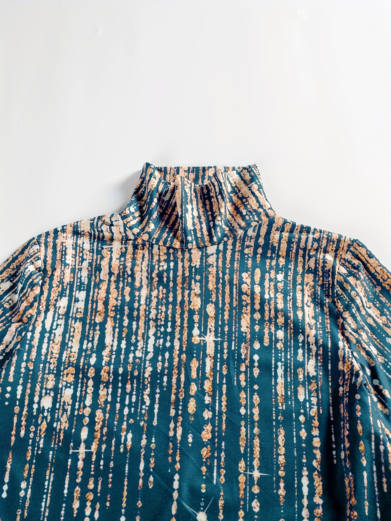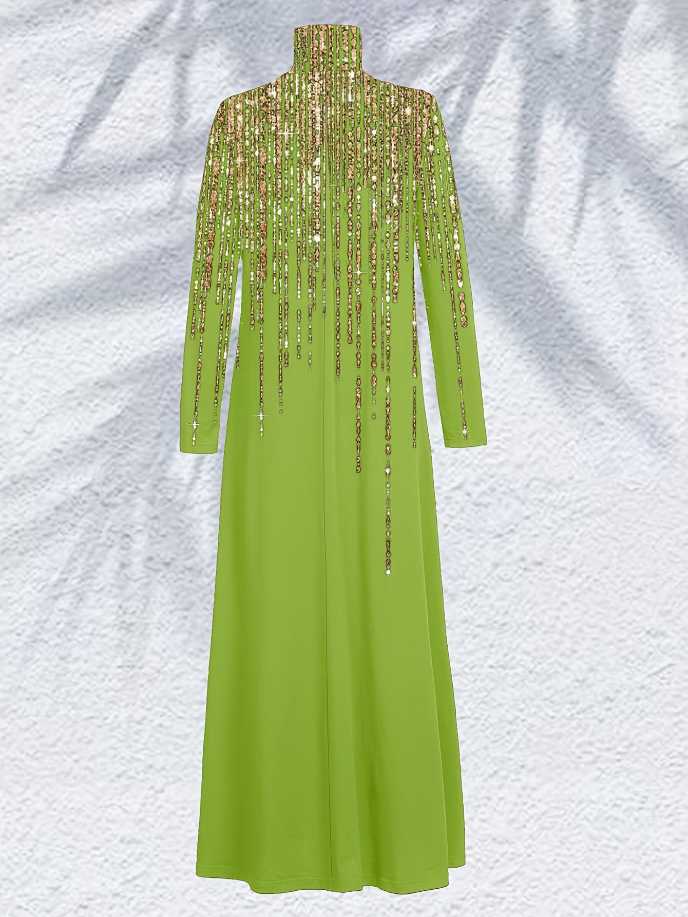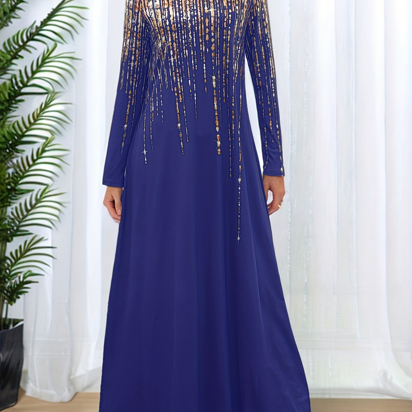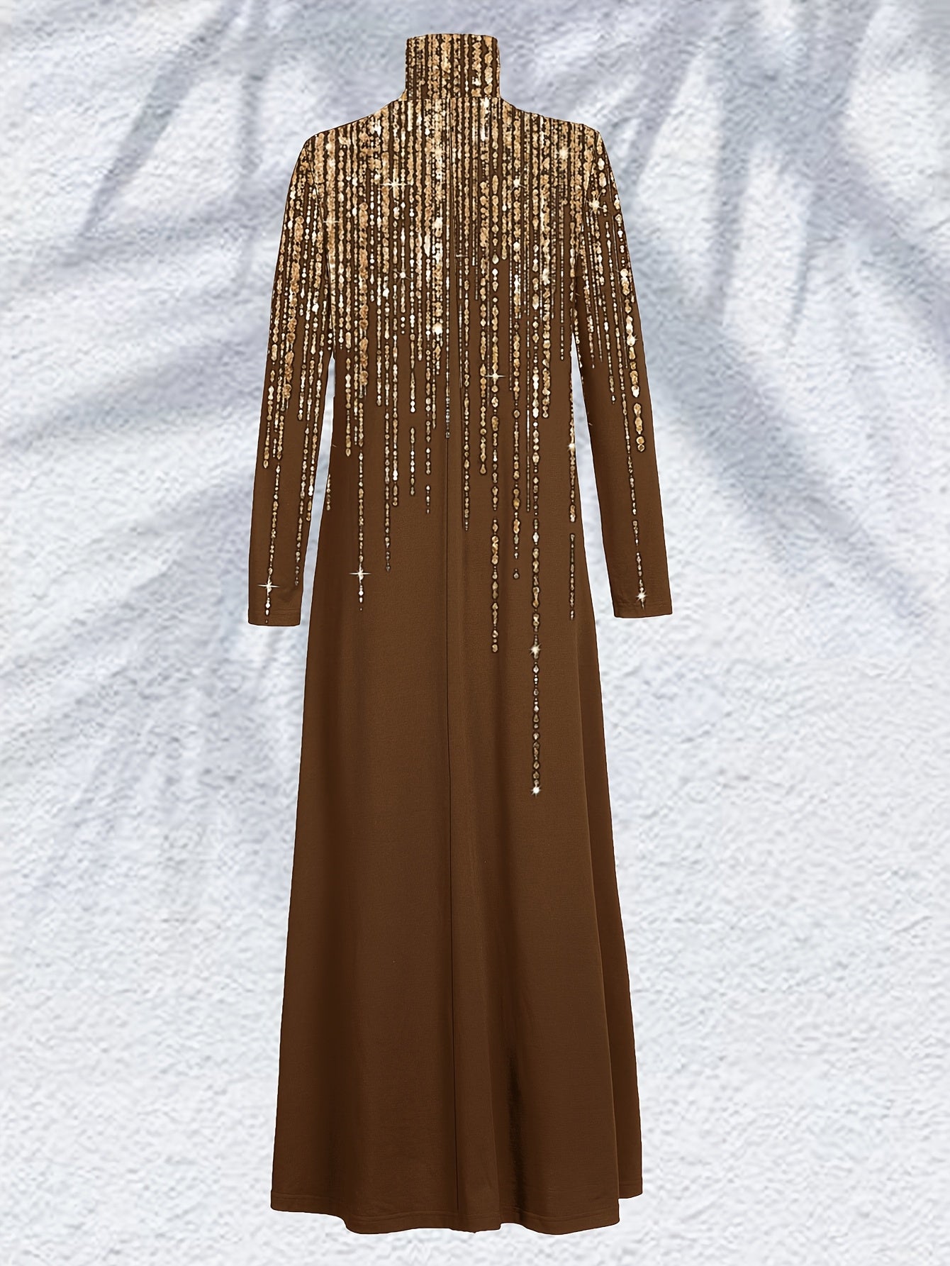Women's Modest Arabian Abaya Robe - High Neck Long Sleeve Geometric Print Casual Dress, Machine Washable Stretchy Fabric for Muslim Women, All-Season Wear, Comfortable Clothing, Festive Attire, Durable Clothing